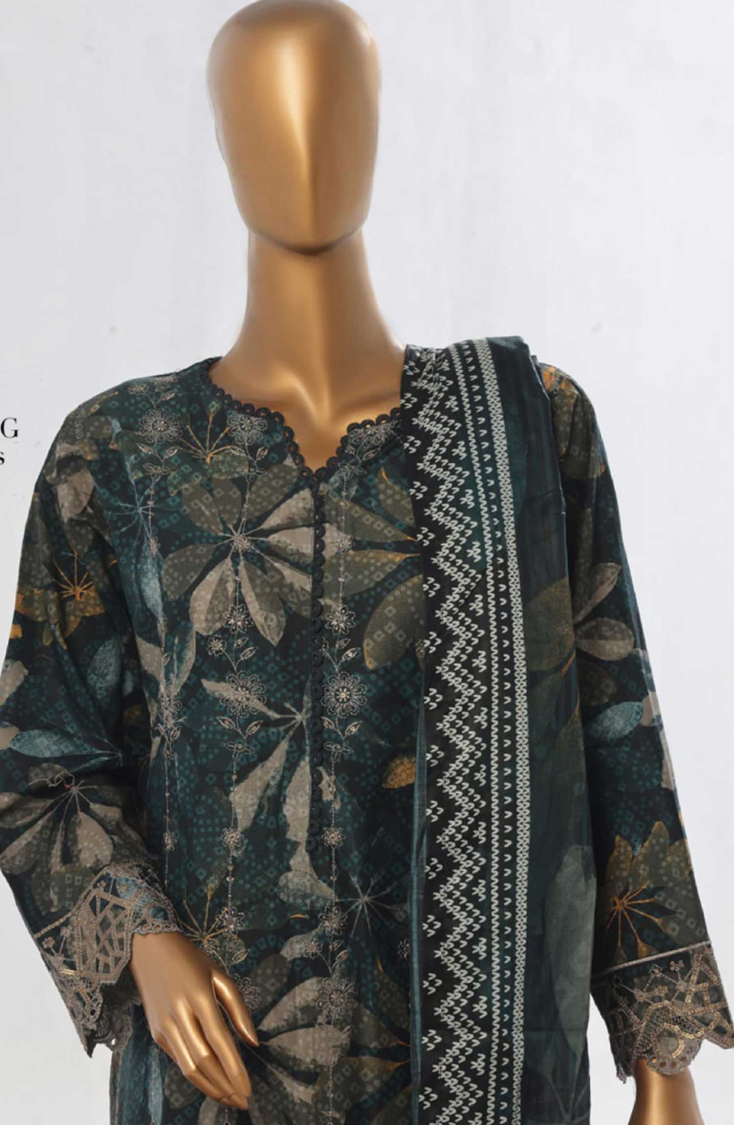 Modest Embroidered Khaddar Stitched 3 Piece Suit - 9990-Blk - MOD25WNT - Black - Winter Collection
