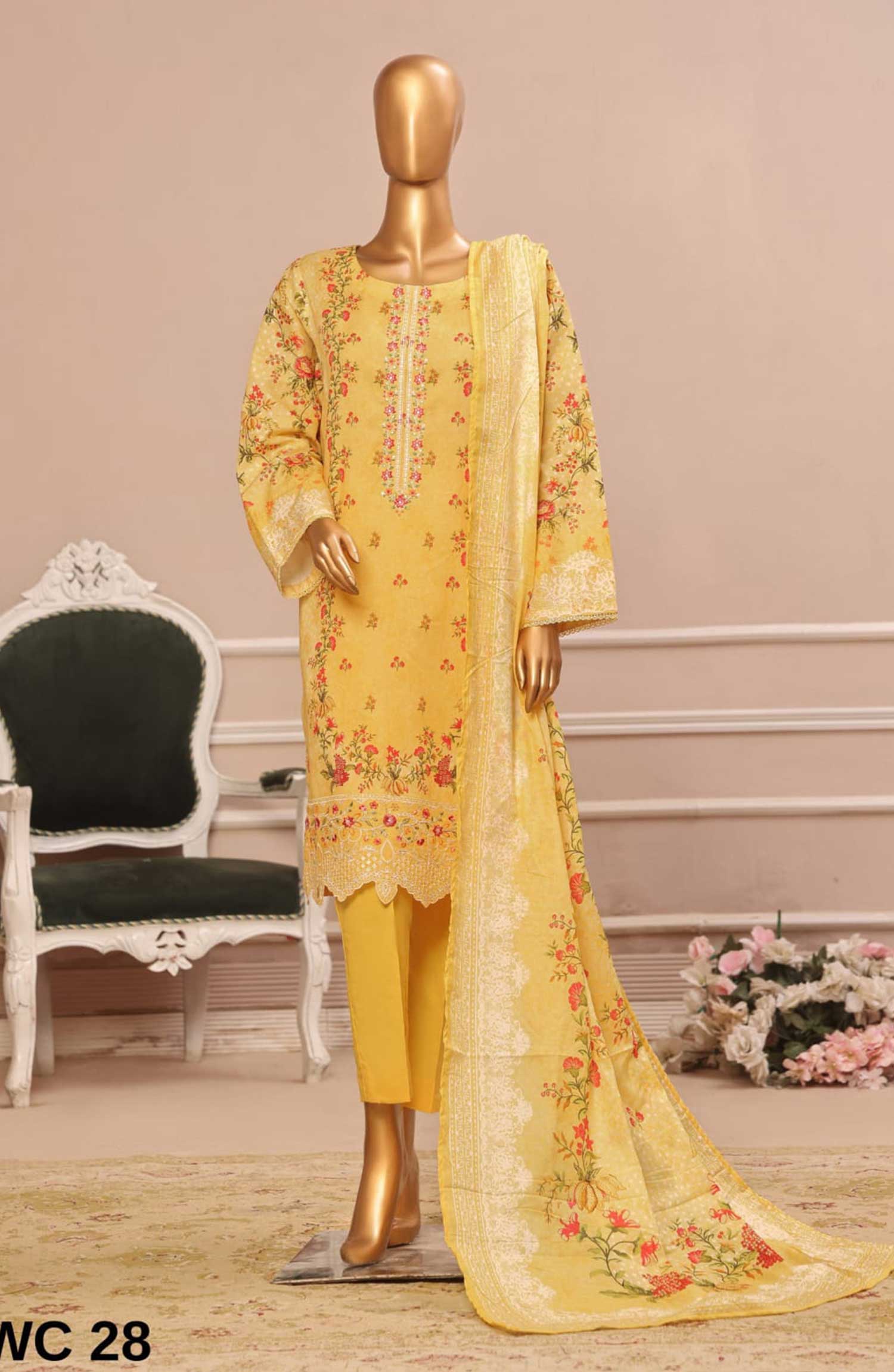 Bin Saeed Embroidered Lawn Stitched 3 Piece - WC 28 - BS25SM - Light Blue - Summer Collection
