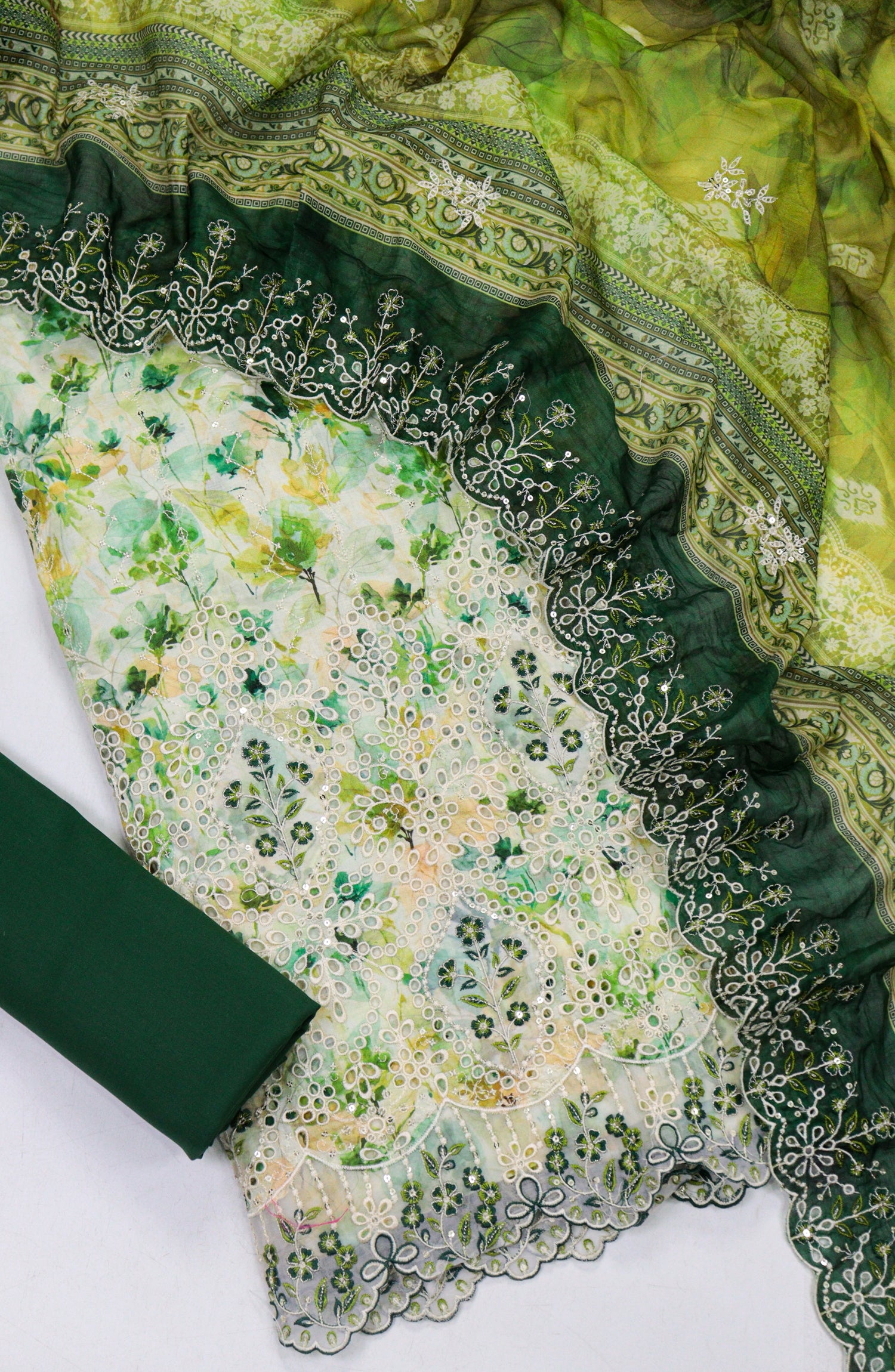 Digital Print and Embroidered Lawn Fabric for Shirt