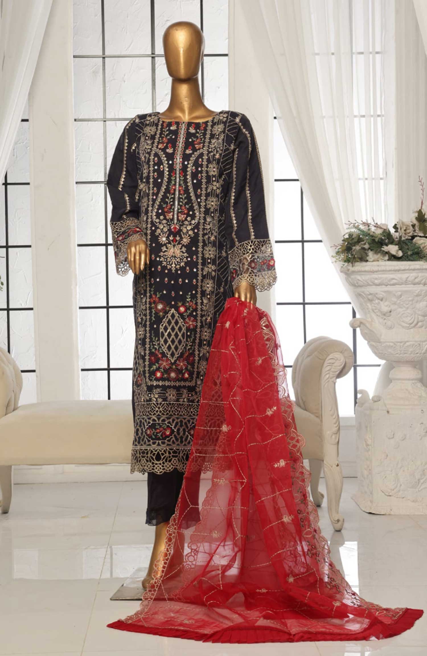 Home Bin Saeed Embroidered Organza Stitched 3 Piece - D-06 - BS25EO - Dark Grey - Festive Collection