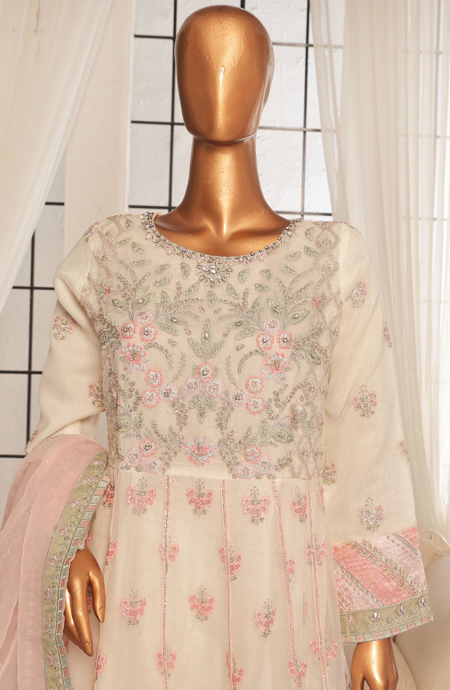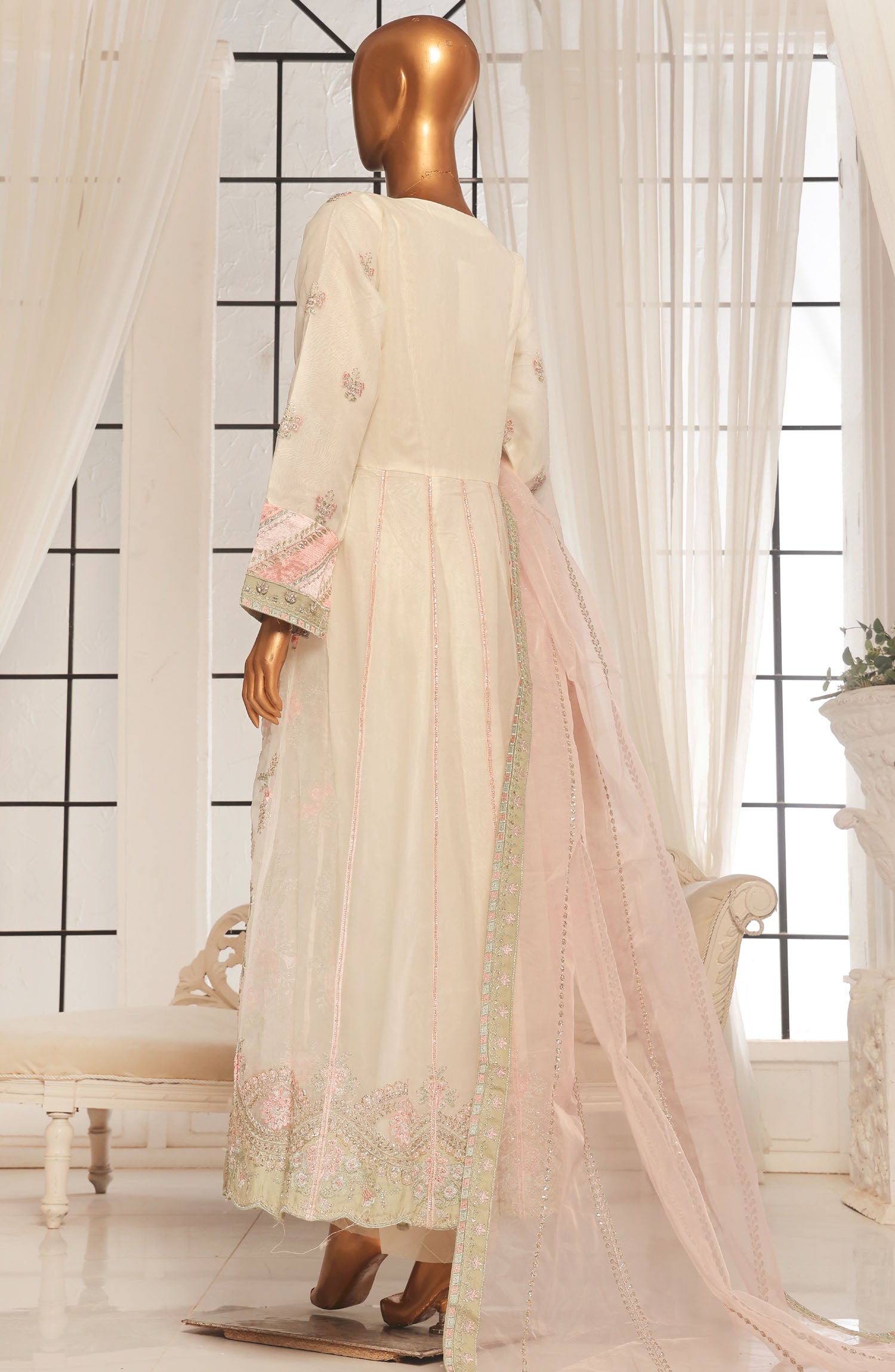 Home Bin Saeed Embroidered Organza Stitched 3 Piece Frock - D-06 - BS25LEO - White - Festive Collection