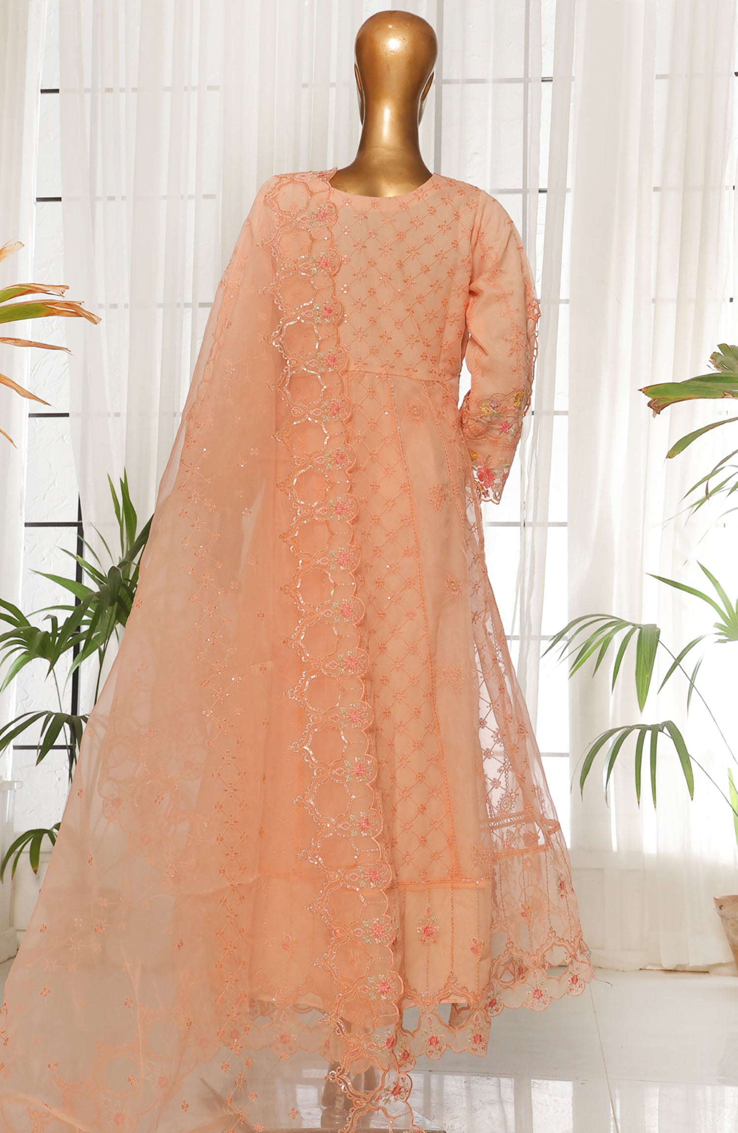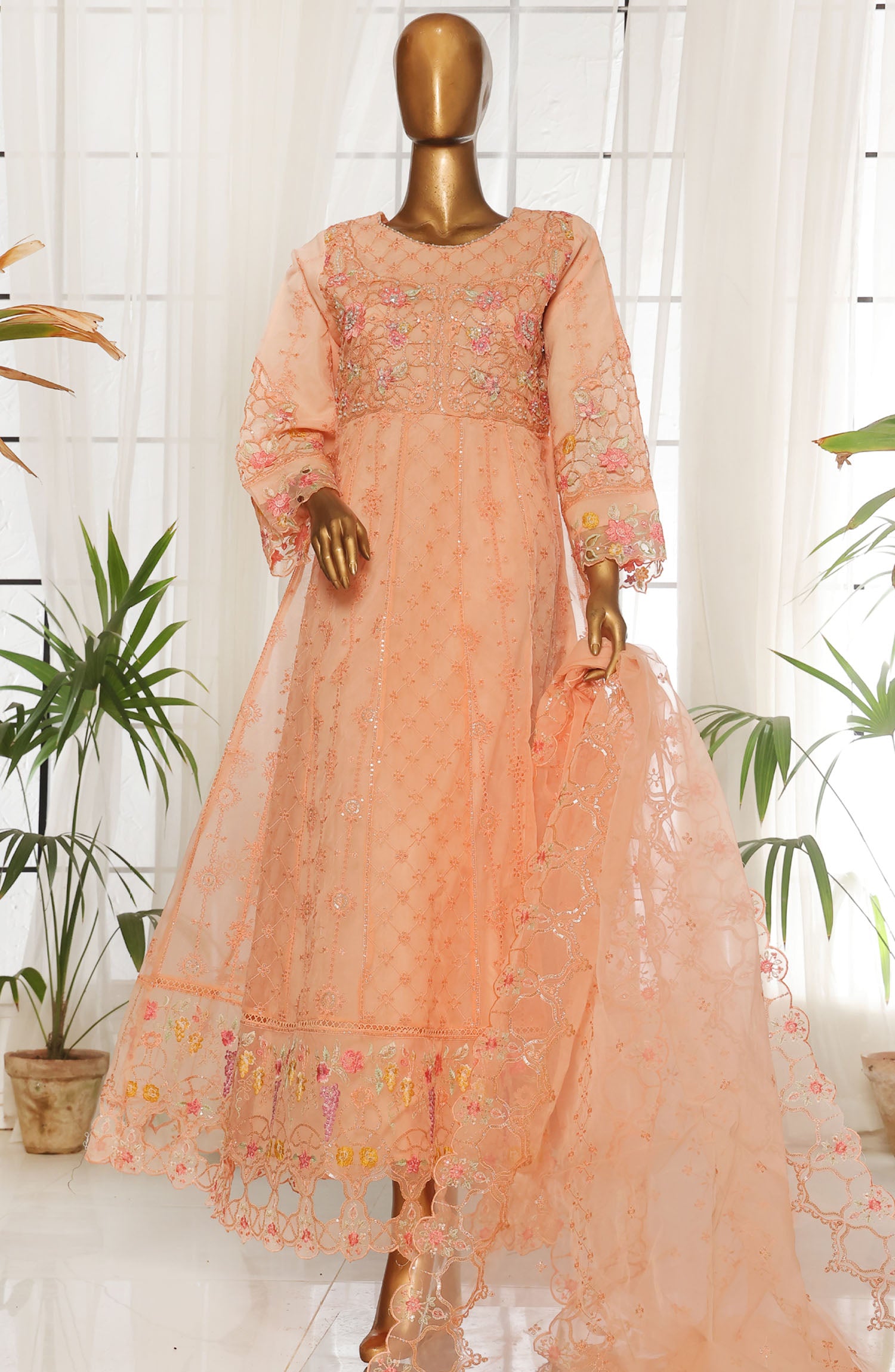 Home Bin Saeed Embroidered Organza Stitched 3 Piece Suit - D-02 - BS25LOCF - Peach - Festive Collection