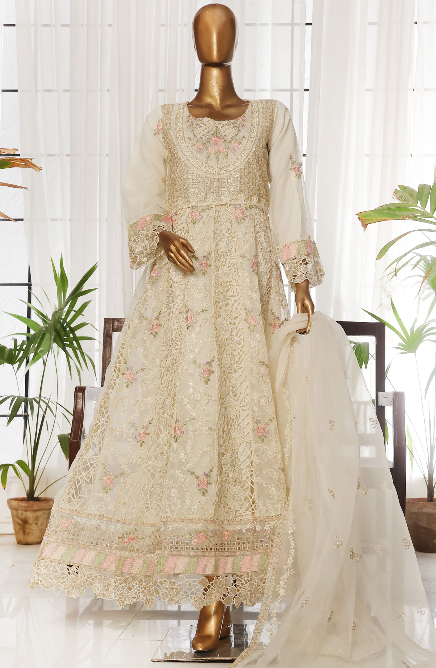 Embroidered Luxury Organza Chiffon 3 Piece Frock