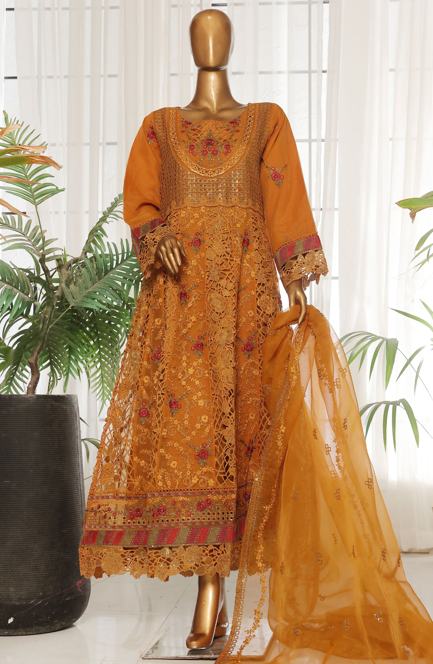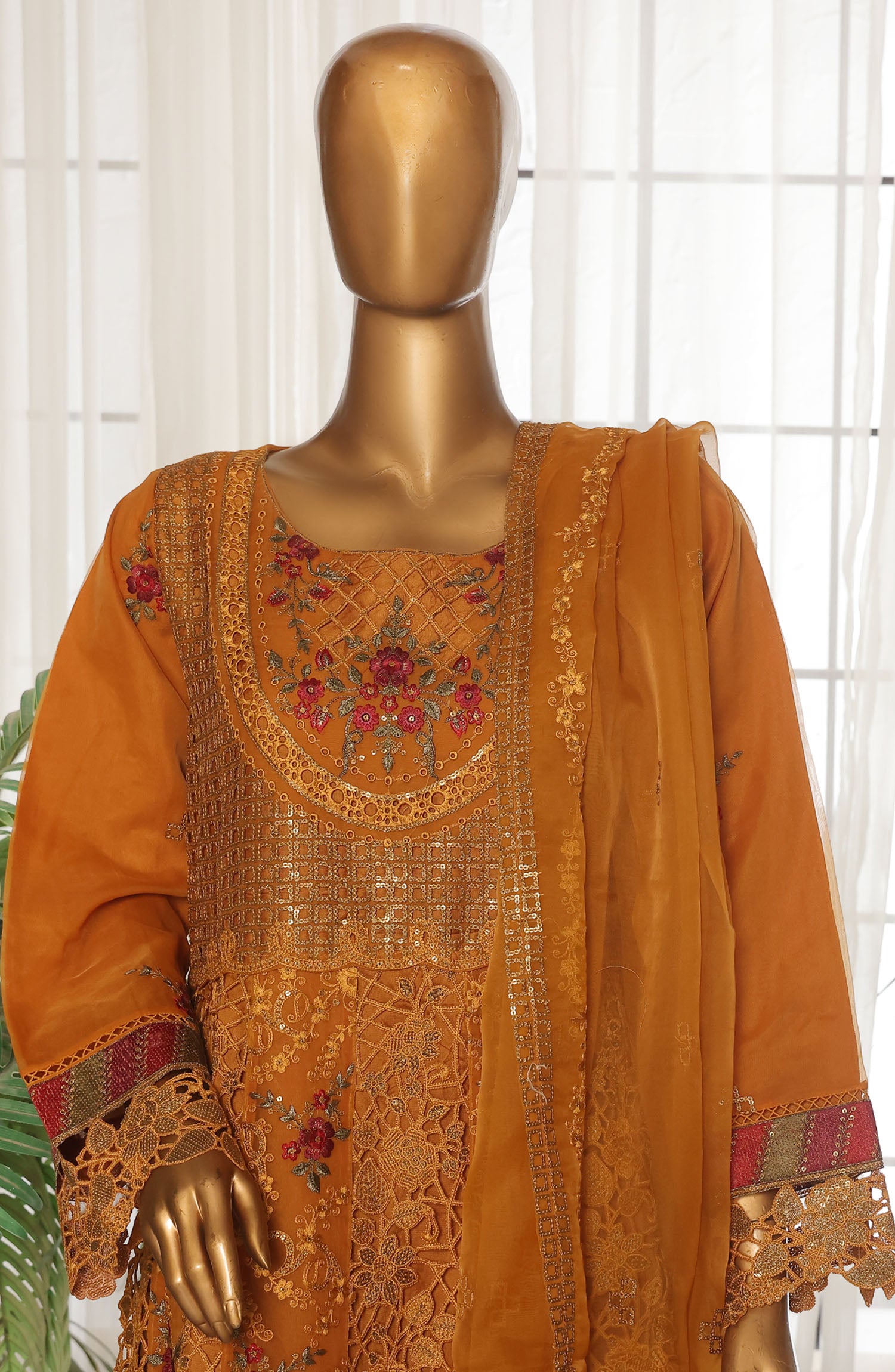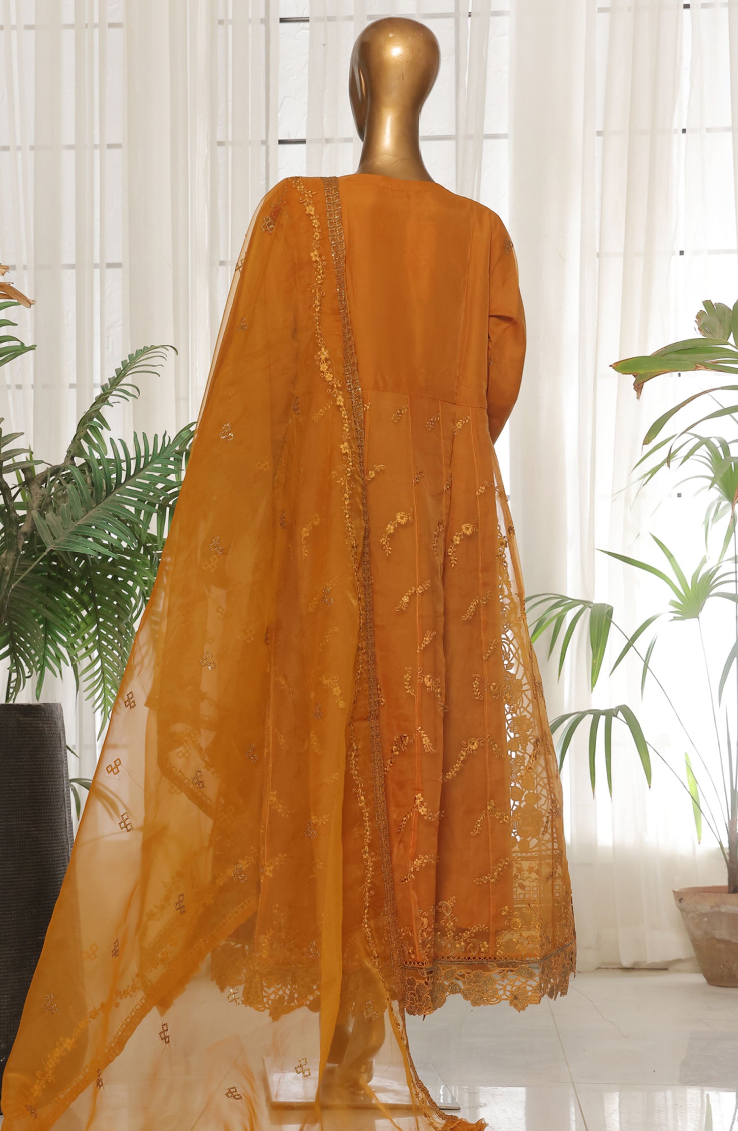 Home Bin Saeed Embroidered Organza Stitched 3 Piece Suit - D-04 - BS25LOCF - Orange - Festive Collection
