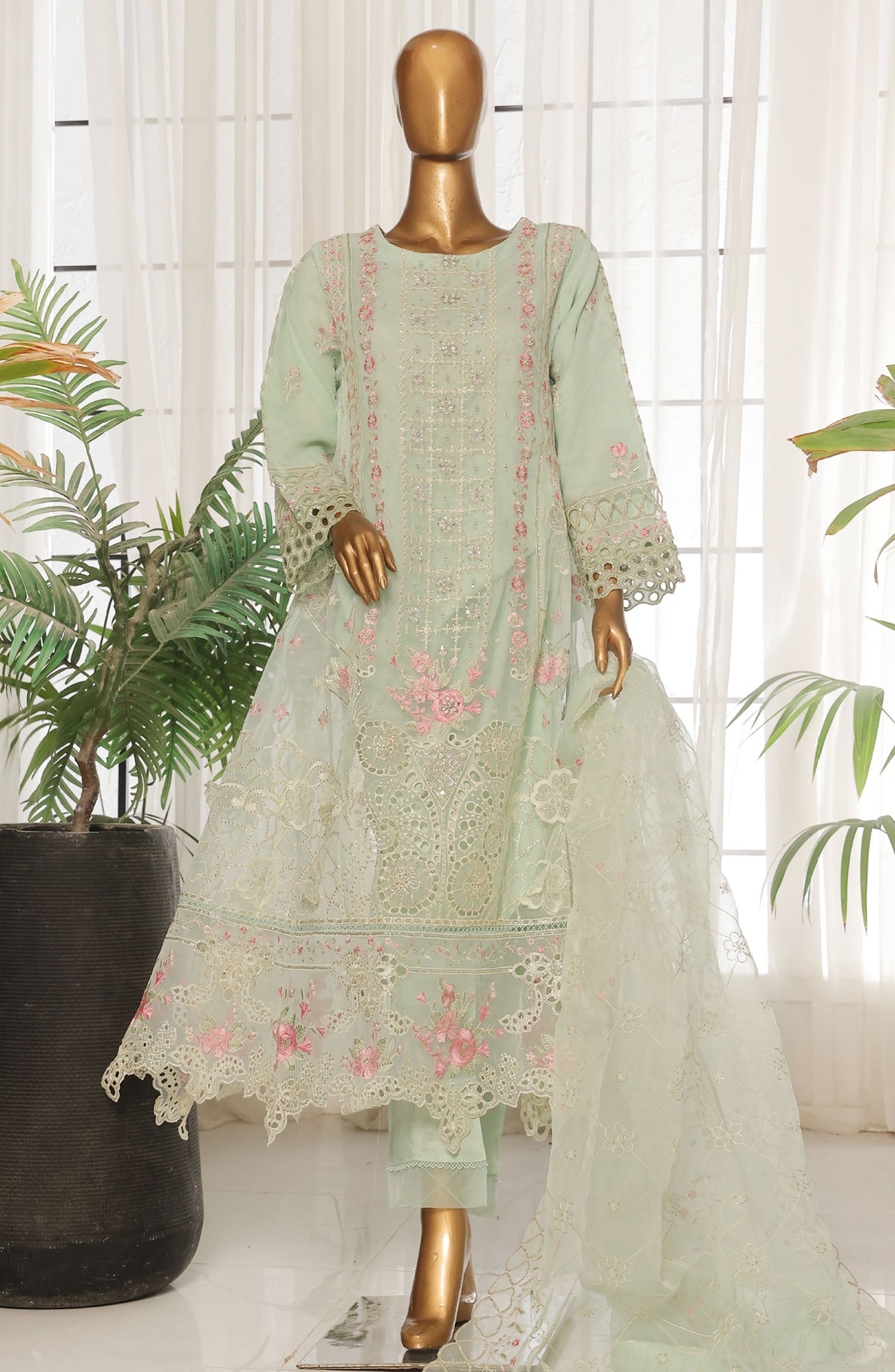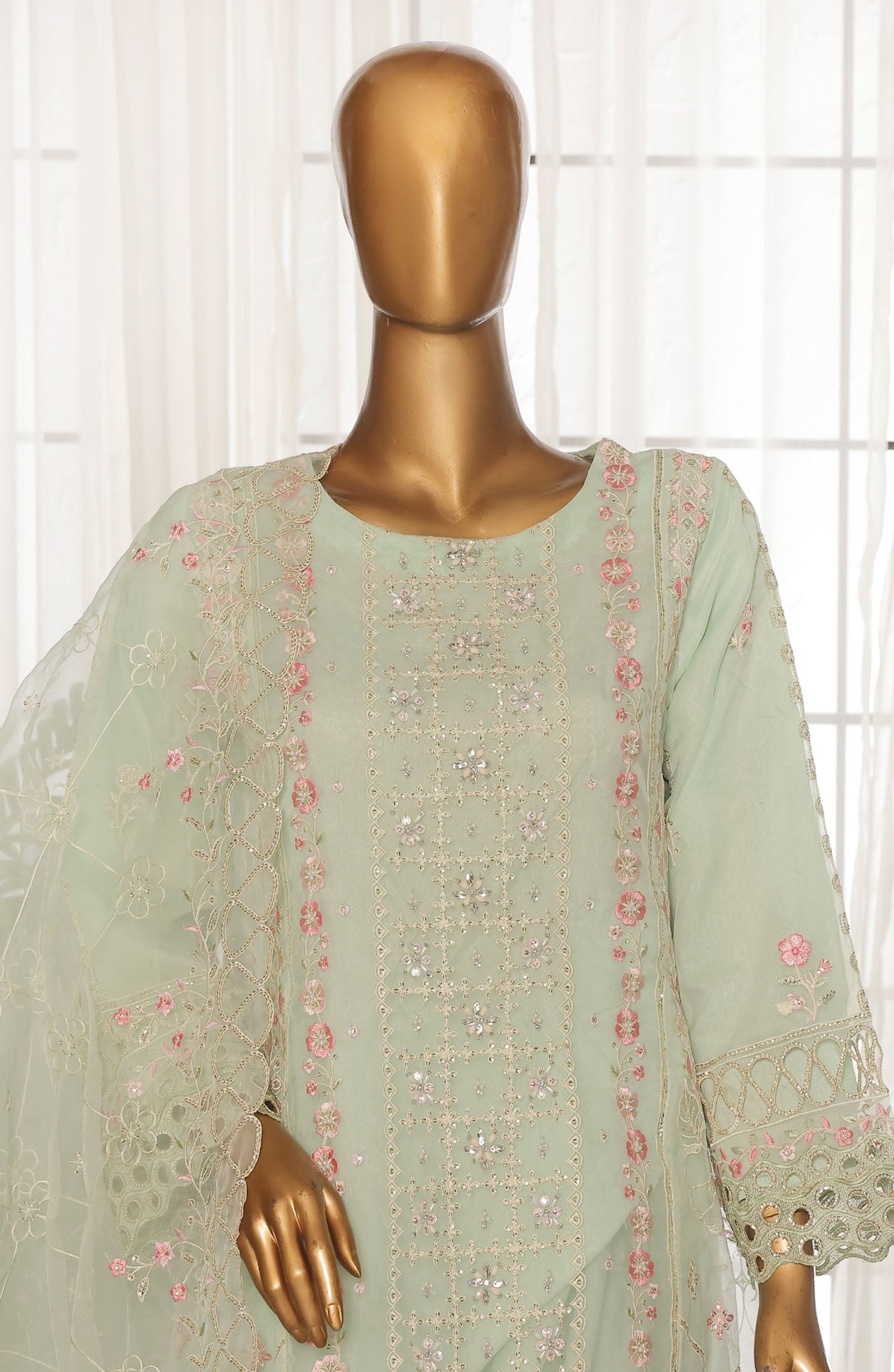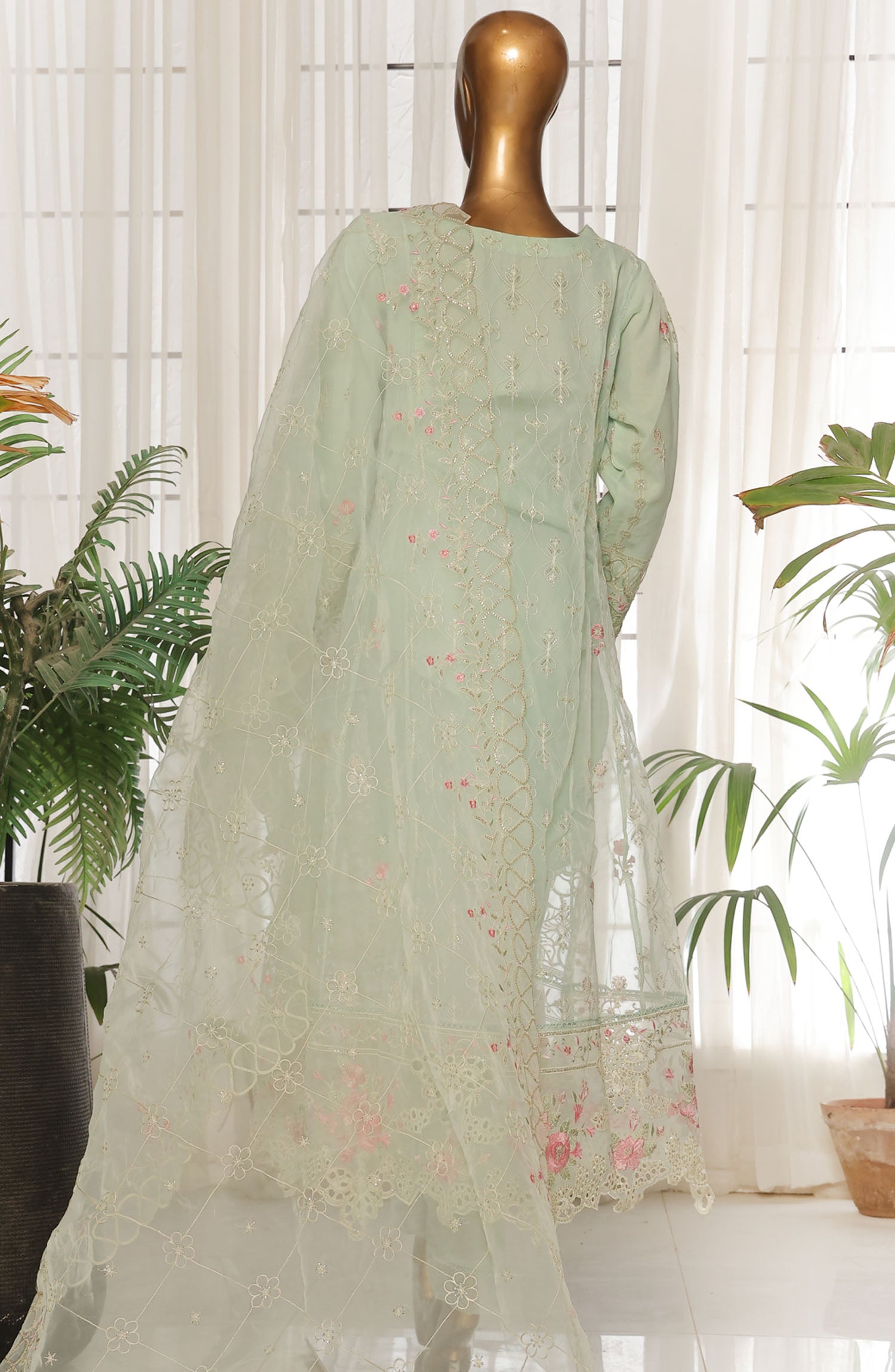 Home Bin Saeed Embroidered Organza Stitched 3 Piece Suit - D-05 - BS25LOCF - Green - Festive Collection