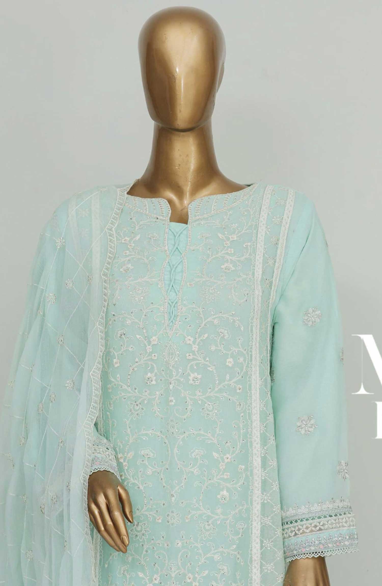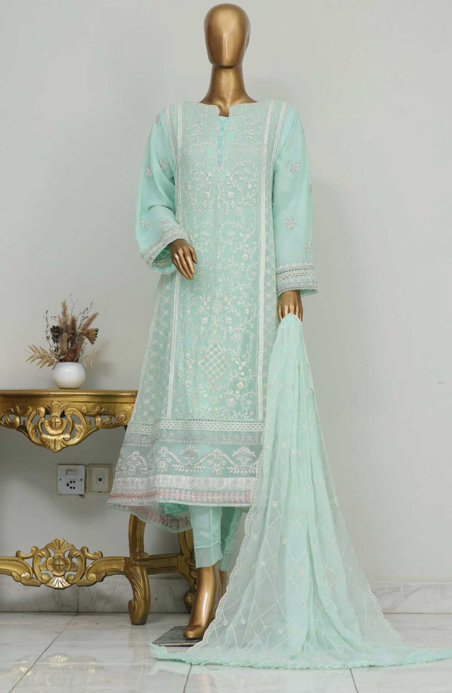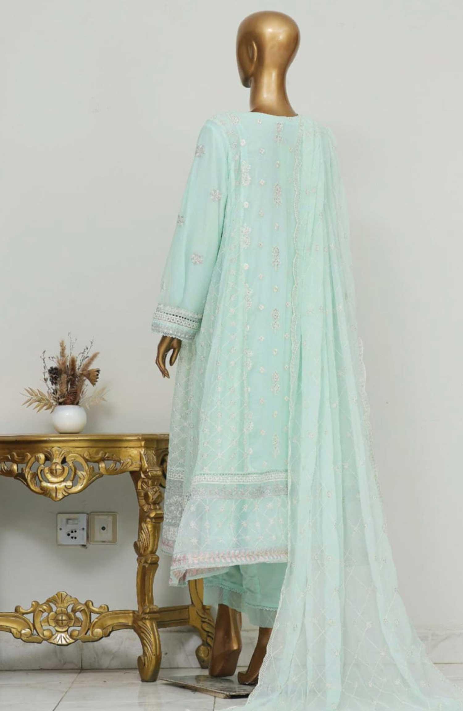 Home Bin Saeed Embroidered Stitched 3 Piece Frock - D-03 - BS25CF - Light Blue - Festive Collection