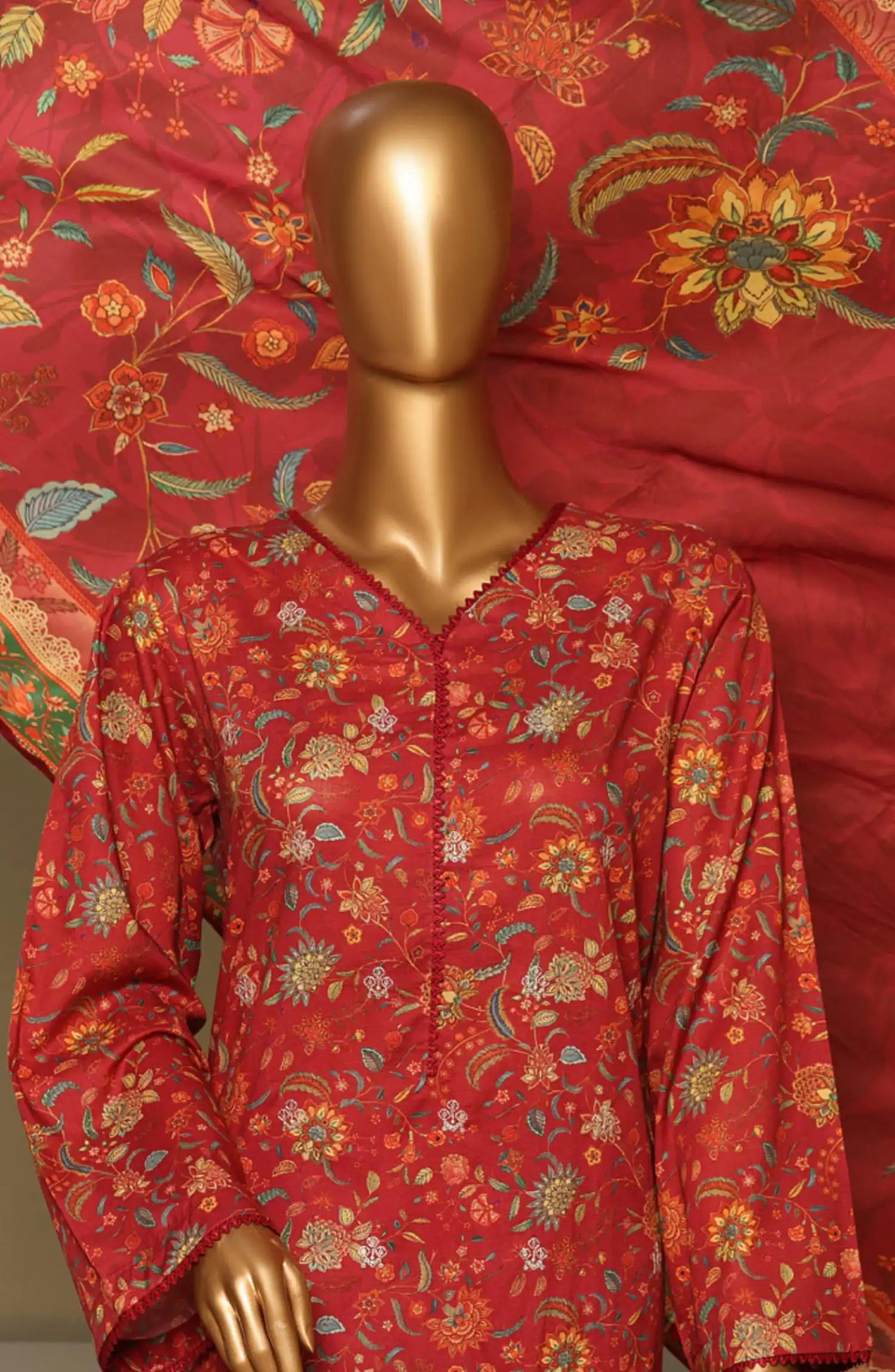 The standard style comes as a long-sleeved kameez with dupatta and trouser/shawlar.