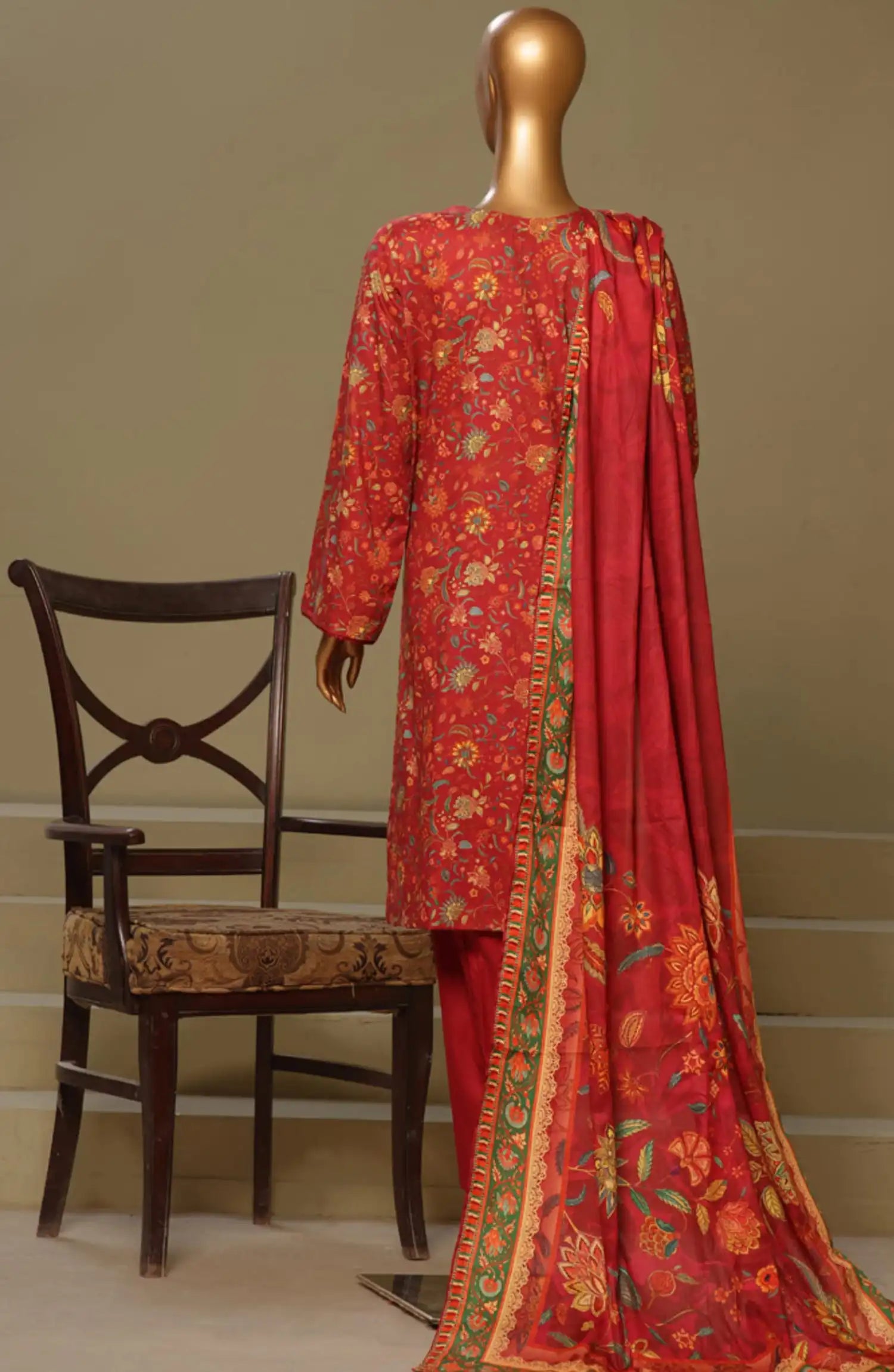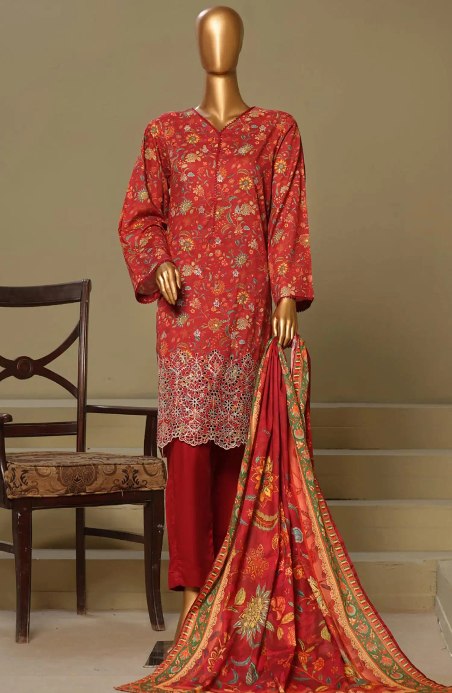 BIN SAEED Exclusive Cotton Chikankari 3 Piece Vol 1 has been styled in the image for photography and illustrative purposes.