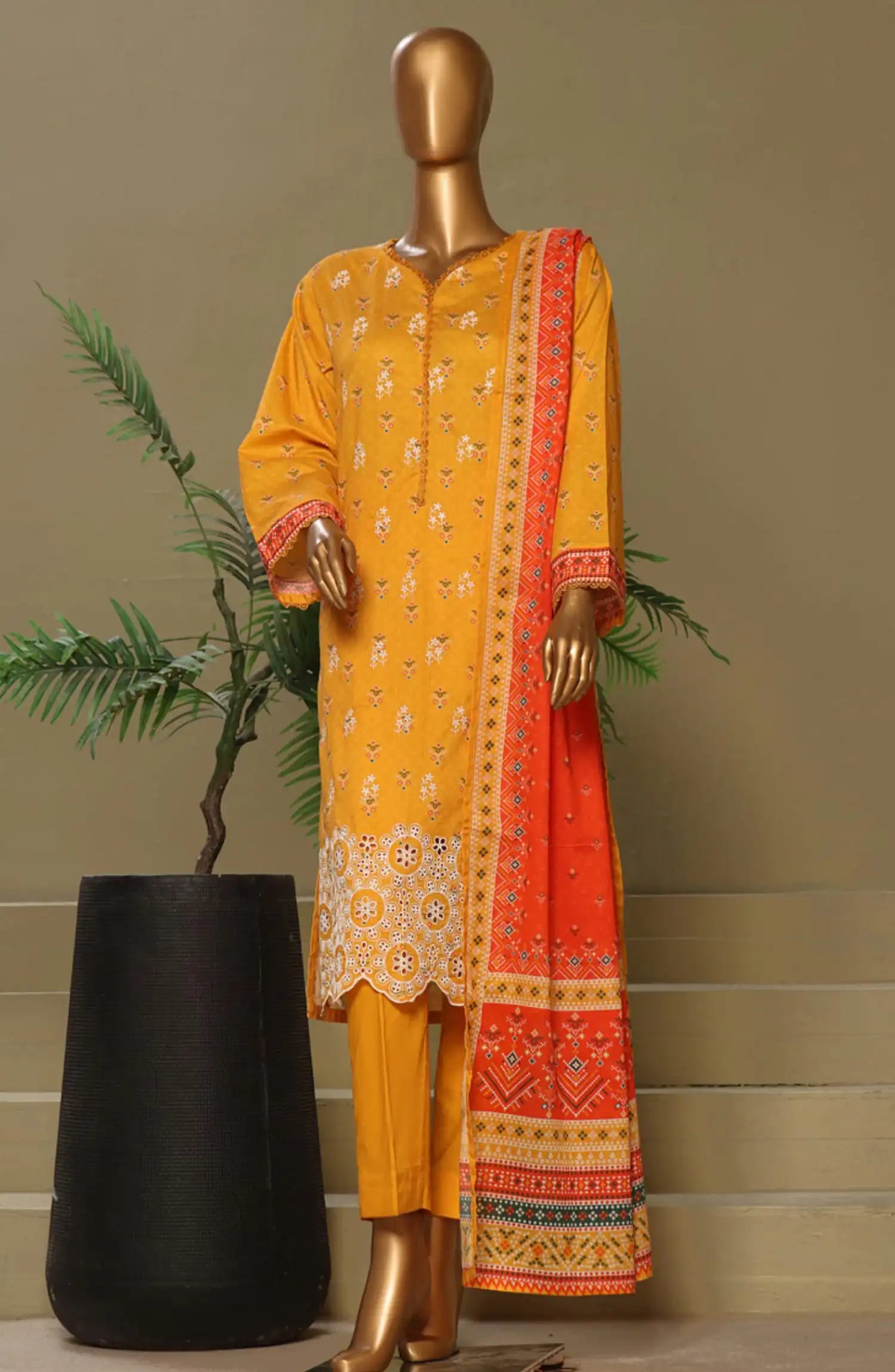 BIN SAEED Exclusive Cotton Chikankari 3 Piece Vol 1 has been styled in the image for photography and illustrative purposes.