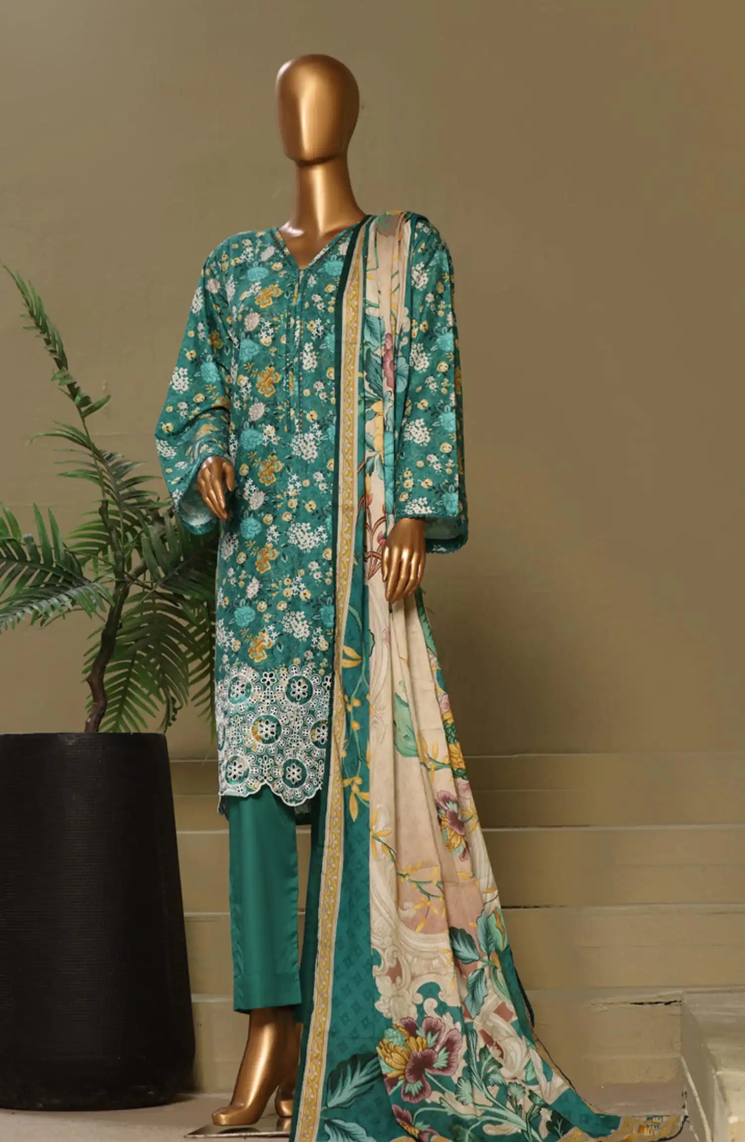 BIN SAEED Exclusive Cotton Chikankari 3 Piece Vol 1 has been styled in the image for photography and illustrative purposes.