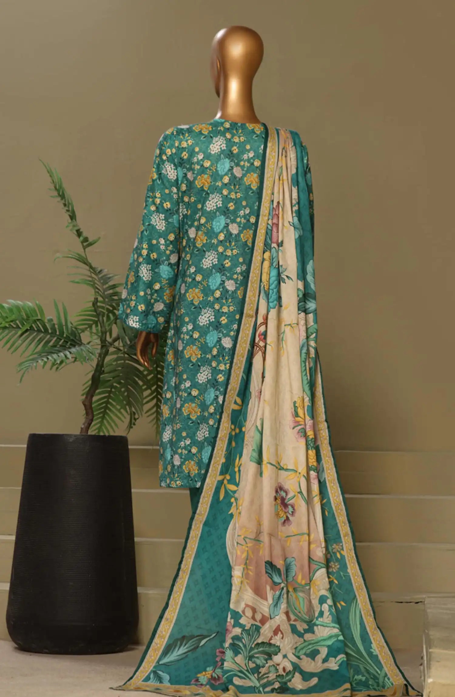 Sadabahar Signature Embroidered Khaddar Stitched 3 Piece Suit - Design-04 - SBD25SNA - Teal - Winter Collection
