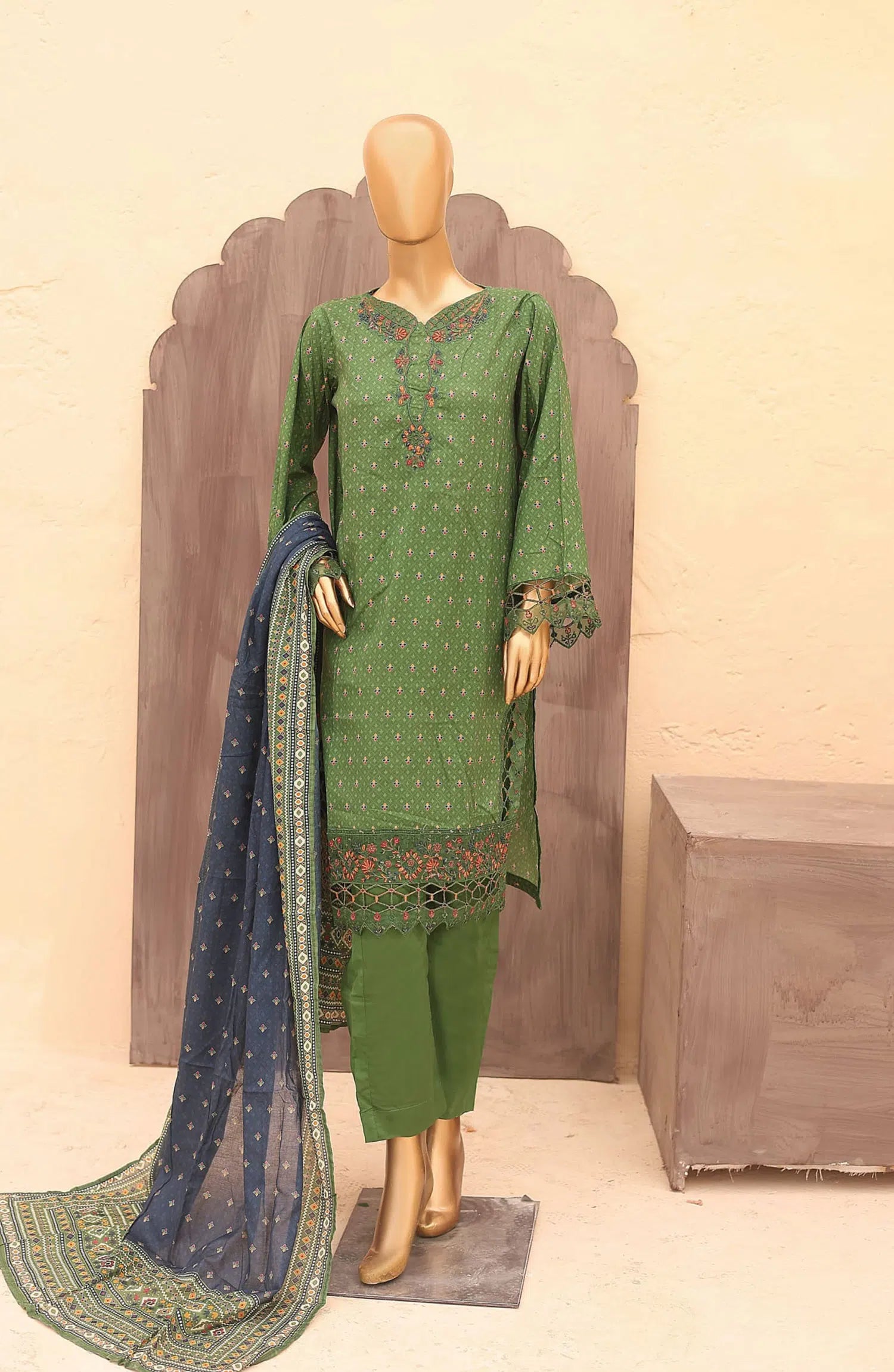 3 Piece Embroidered Lawnkari Shirt with Plain Dupatta and Trouser .
