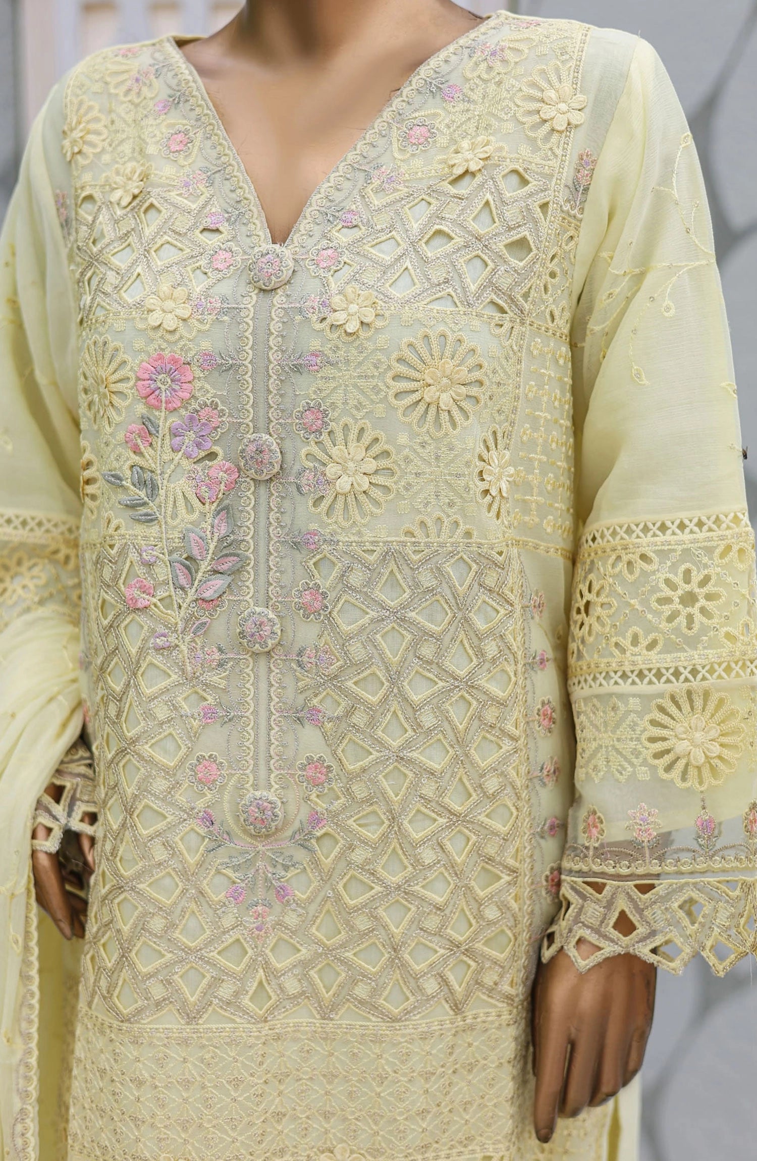 3 Piece Stitched Embroidered Chiffon Suit with Full Embroidered Dupatta and Trouser