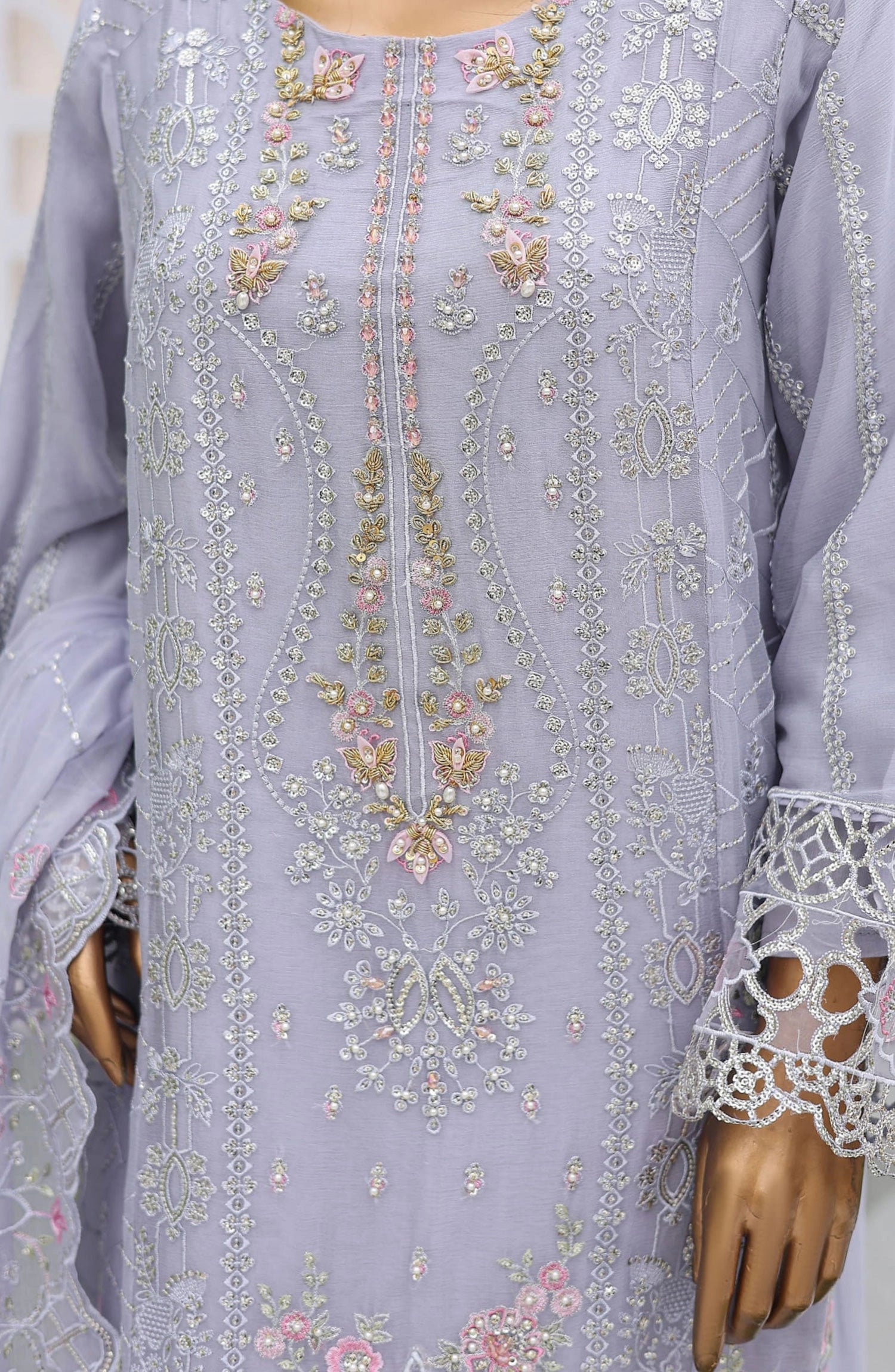 3 Piece Stitched Embroidered Chiffon Suit with Full Embroidered Dupatta and Trouser