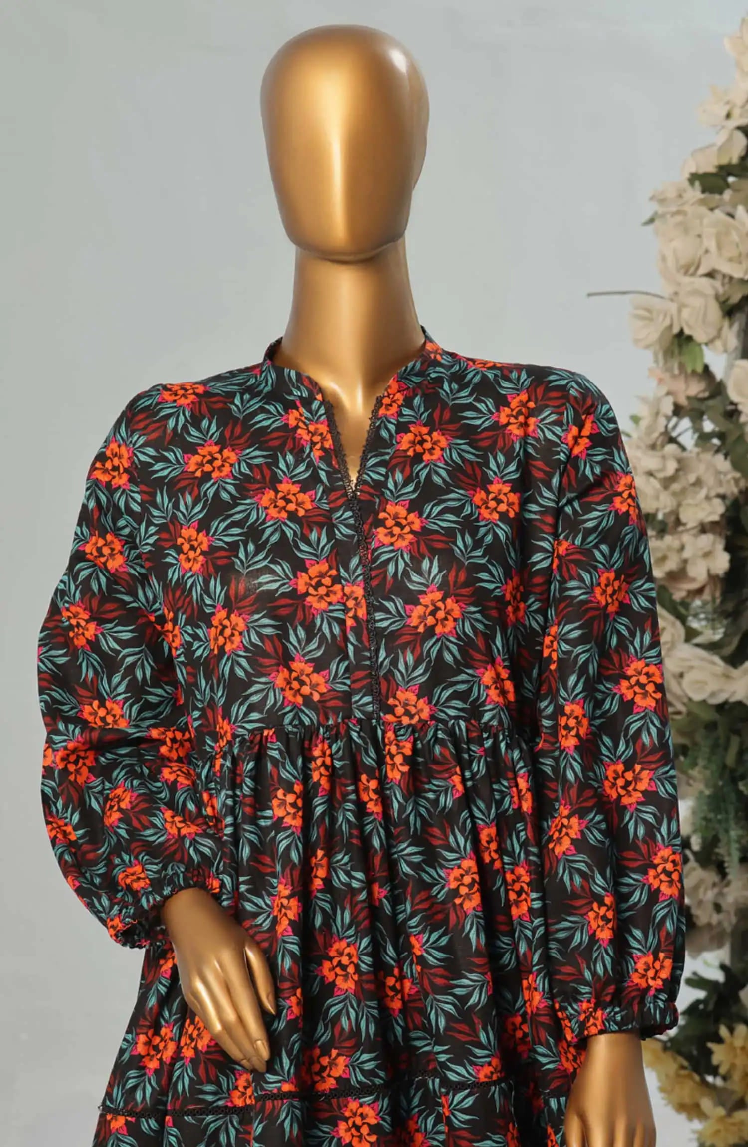 2 Piece Printed Khaddar Stitched Frock with Trouser .