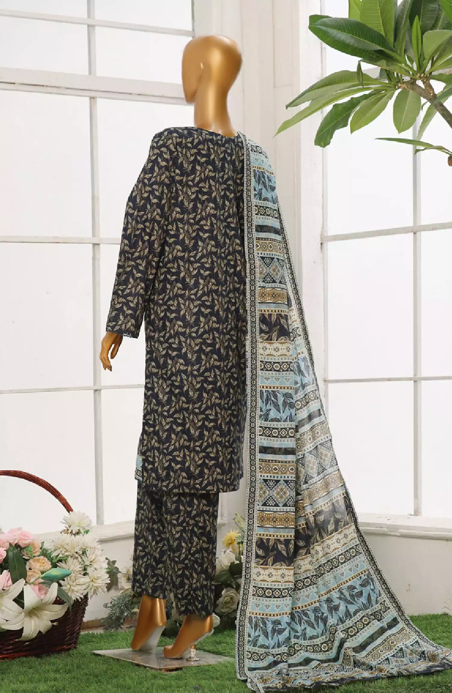 Bin Saeed Exclusive Printed Stitched Cotton Collection has been styled in the image for photography and illustrative purposes.