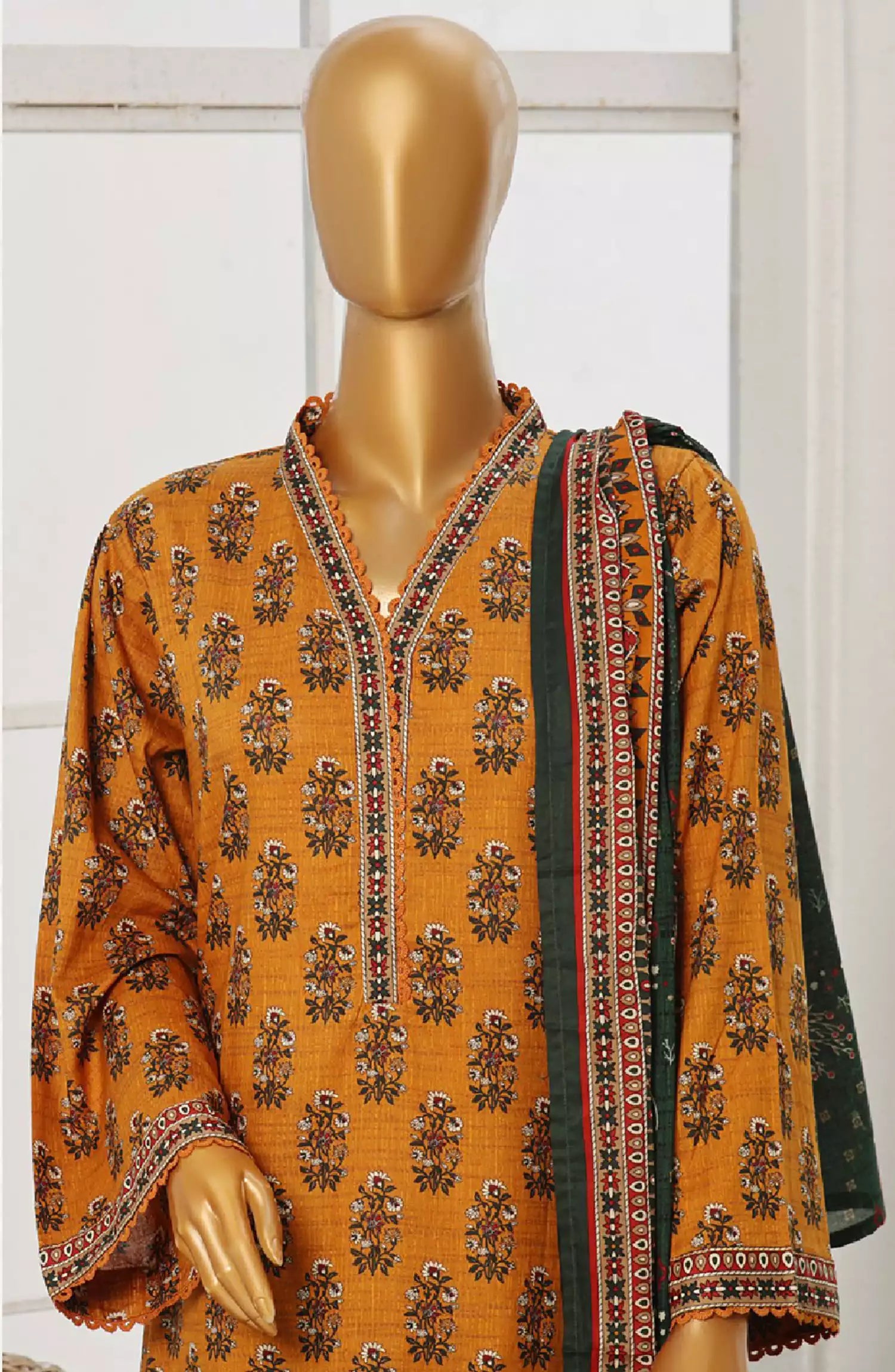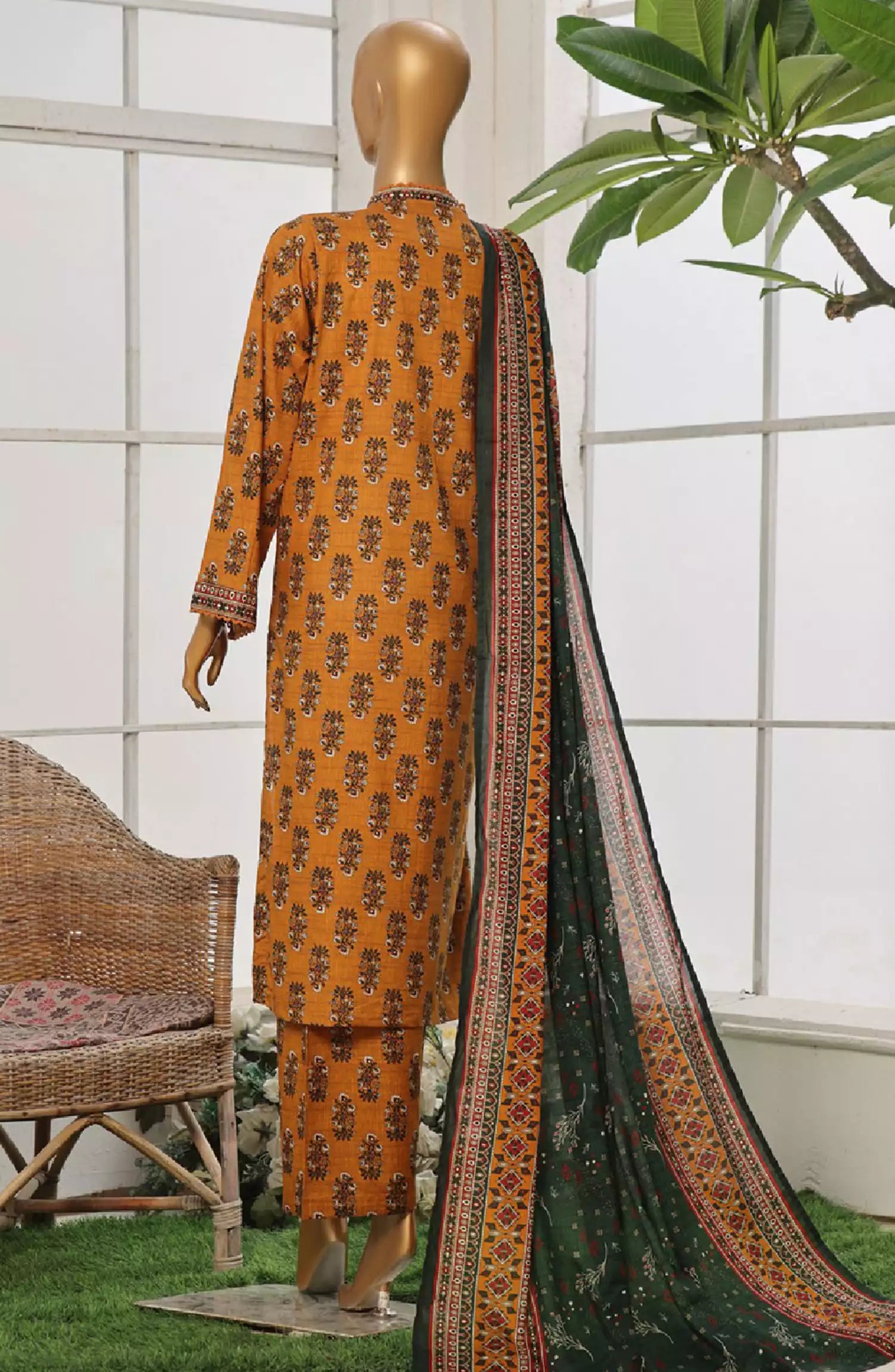 Bin Saeed Exclusive Printed Stitched Cotton Collection has been styled in the image for photography and illustrative purposes.