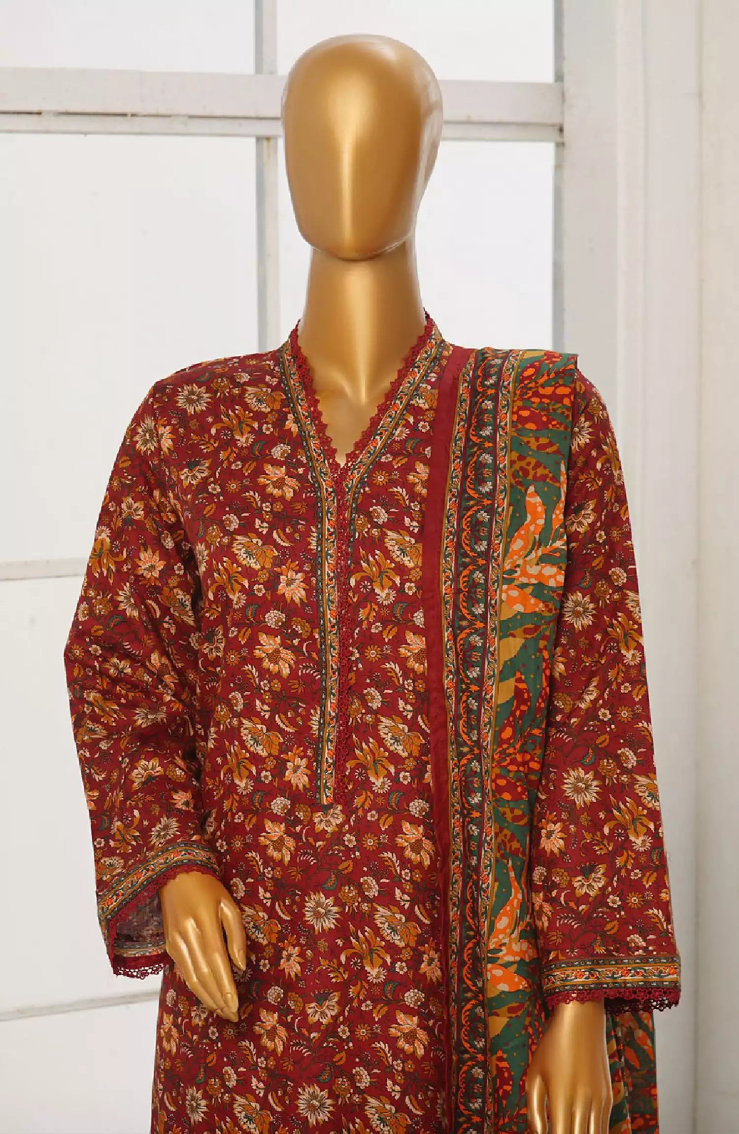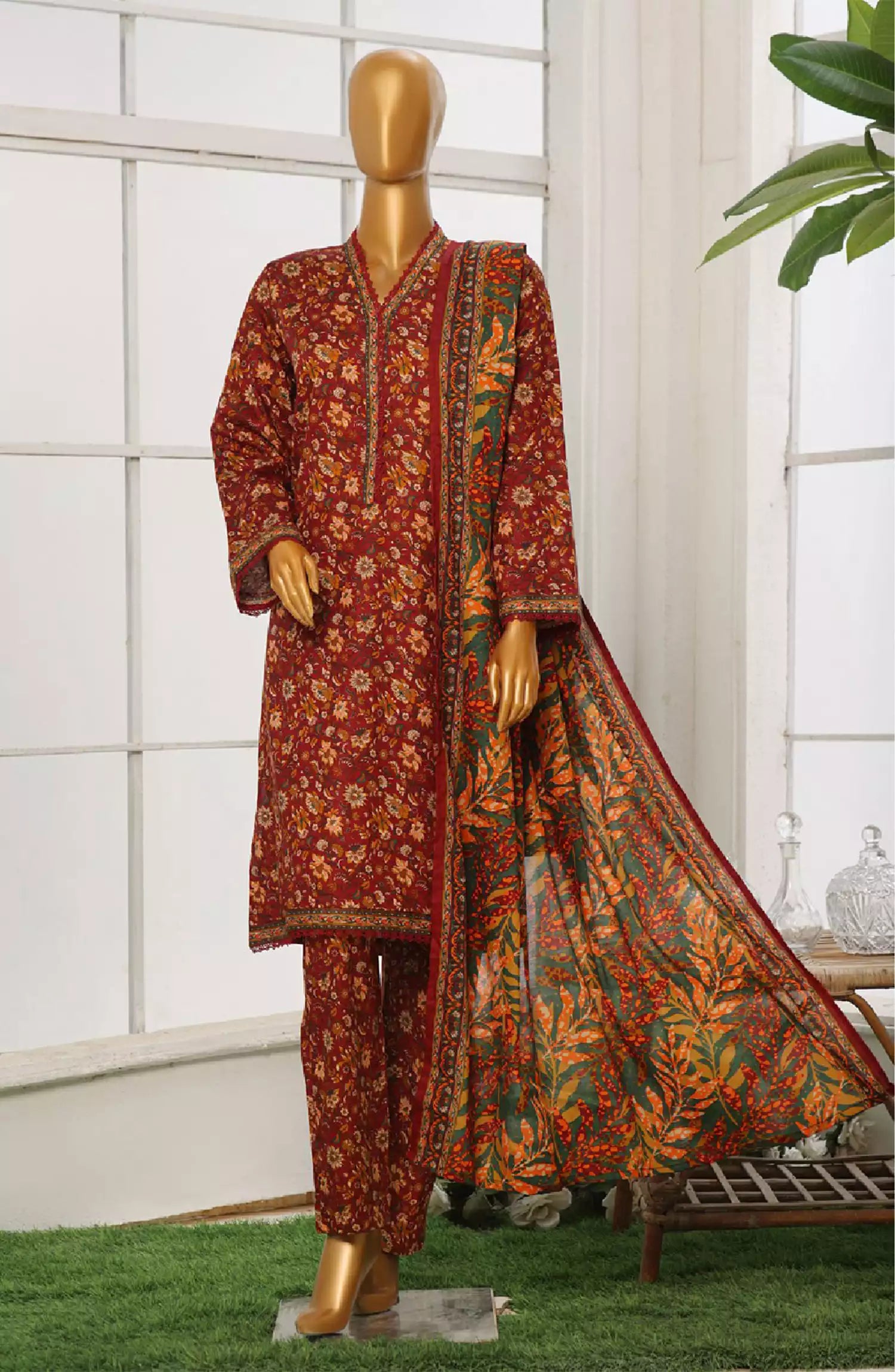 Bin Saeed Exclusive Printed Stitched Cotton Collection has been styled in the image for photography and illustrative purposes.