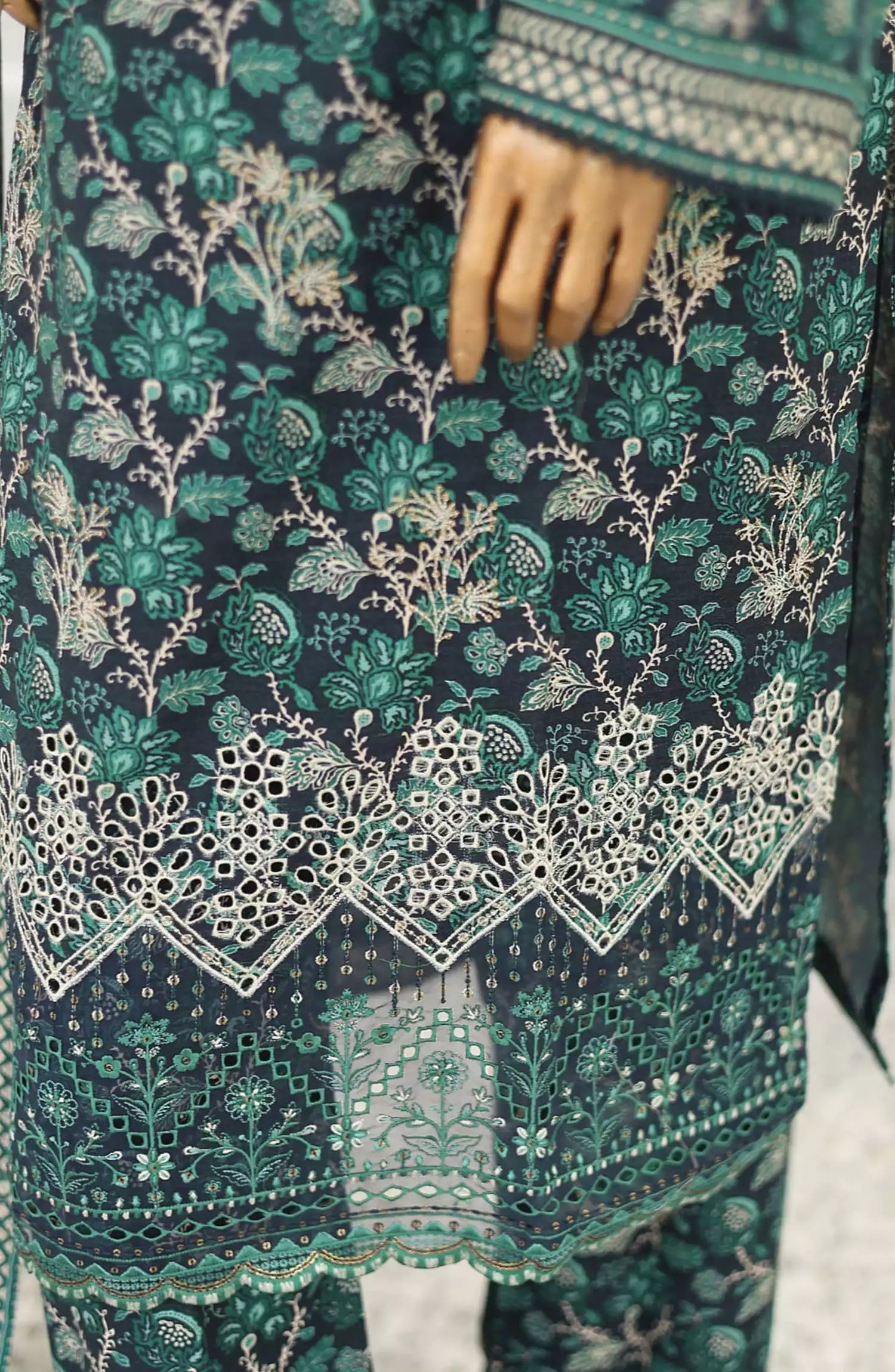 Sadabahar Signature Embroidered Khaddar Stitched 3 Piece Suit - Design-04 - SBD25SNA - Teal - Winter Collection
