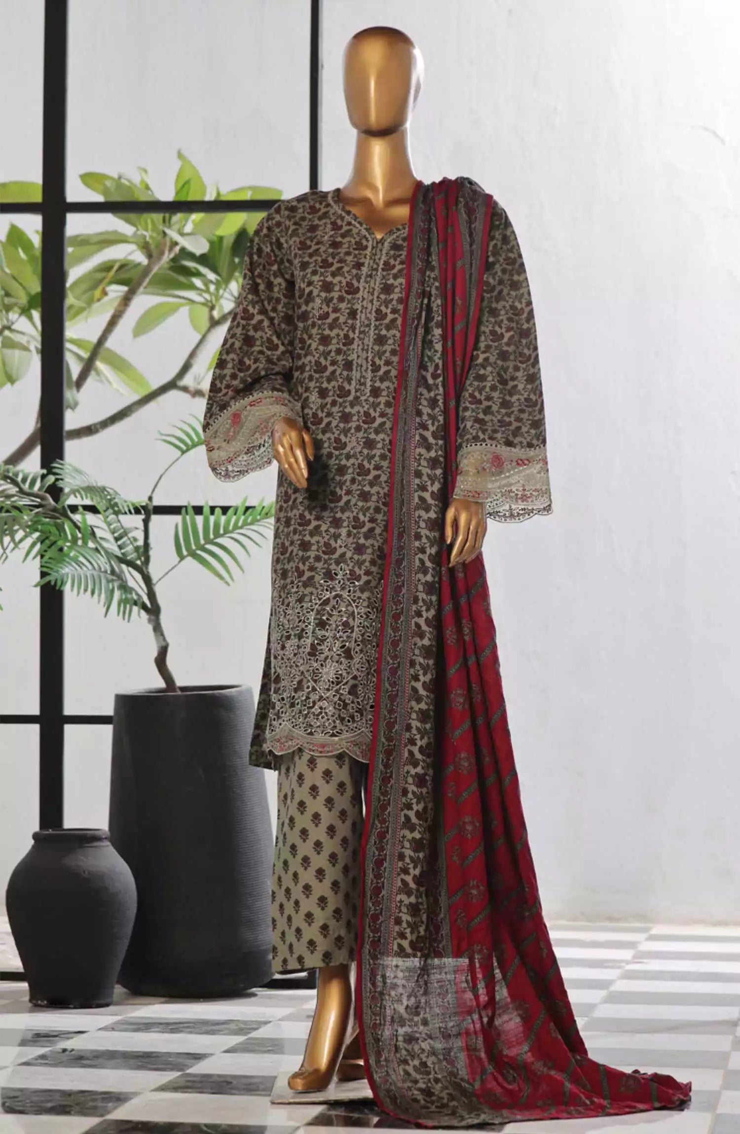 Sadabahar Signature Embroidered Khaddar Stitched 3 Piece Suit - Design-05 - SBD25SNA - Maroon - Winter Collection