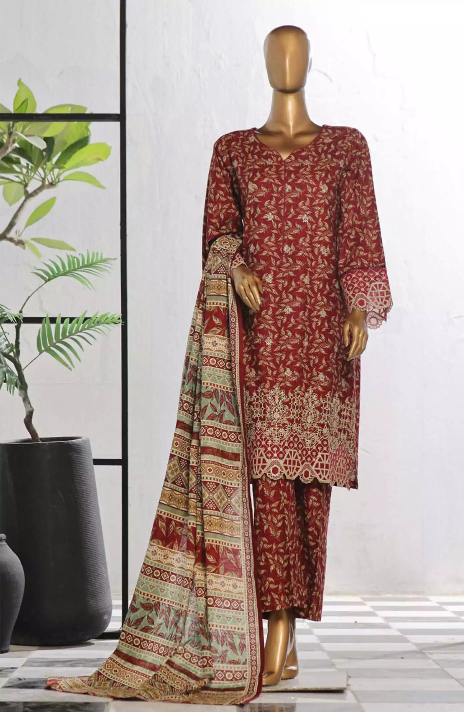 Sadabahar Signature Embroidered Khaddar Stitched 3 Piece Suit - Design-05 - SBD25SNA - Maroon - Winter Collection