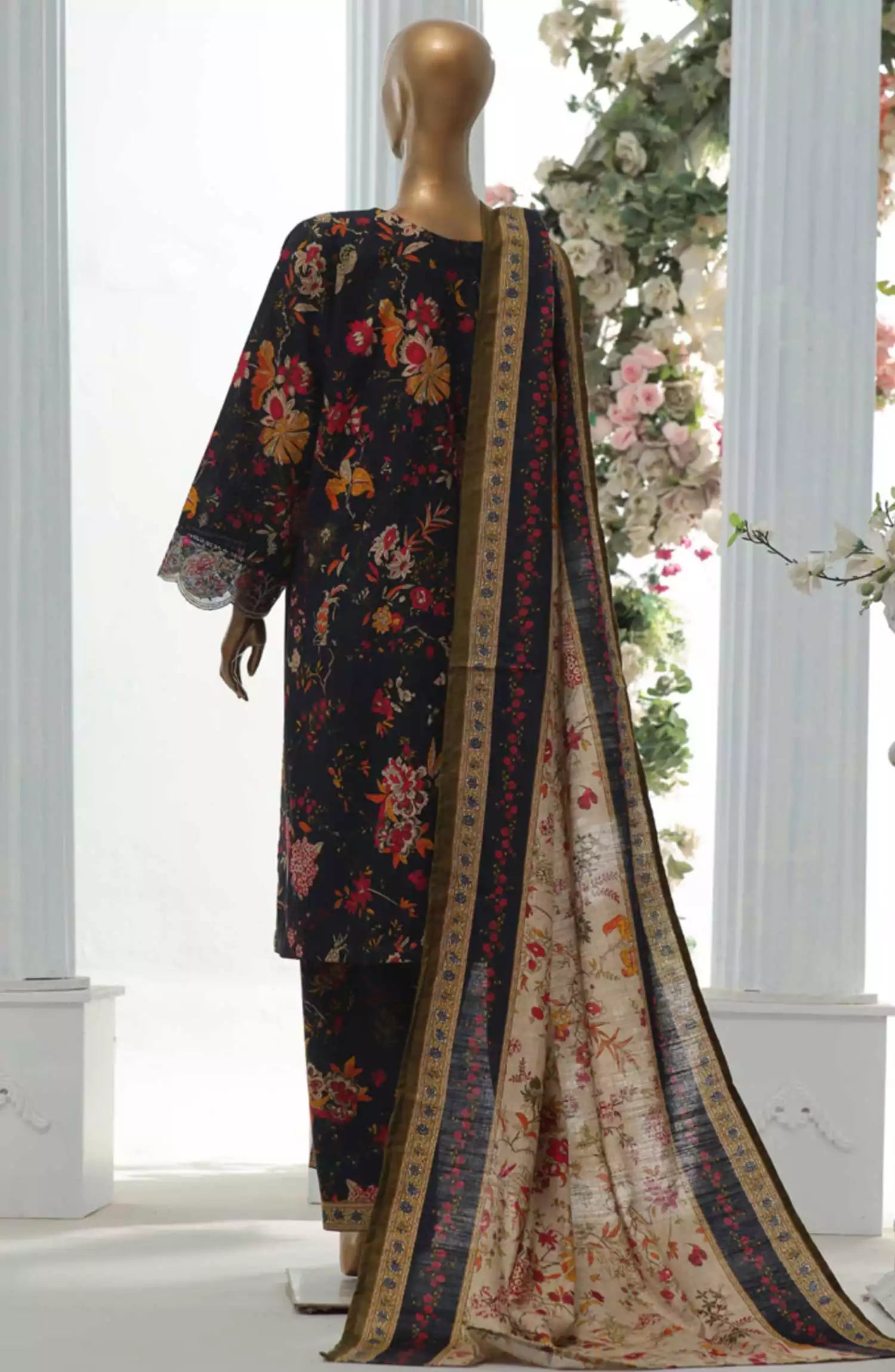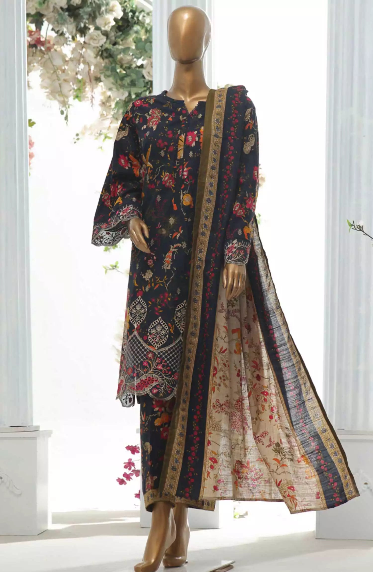 Sadabahar Signature Embroidered Khaddar Stitched 3 Piece Suit - Design-03 - SBD25SNA - Blue - Winter Collection