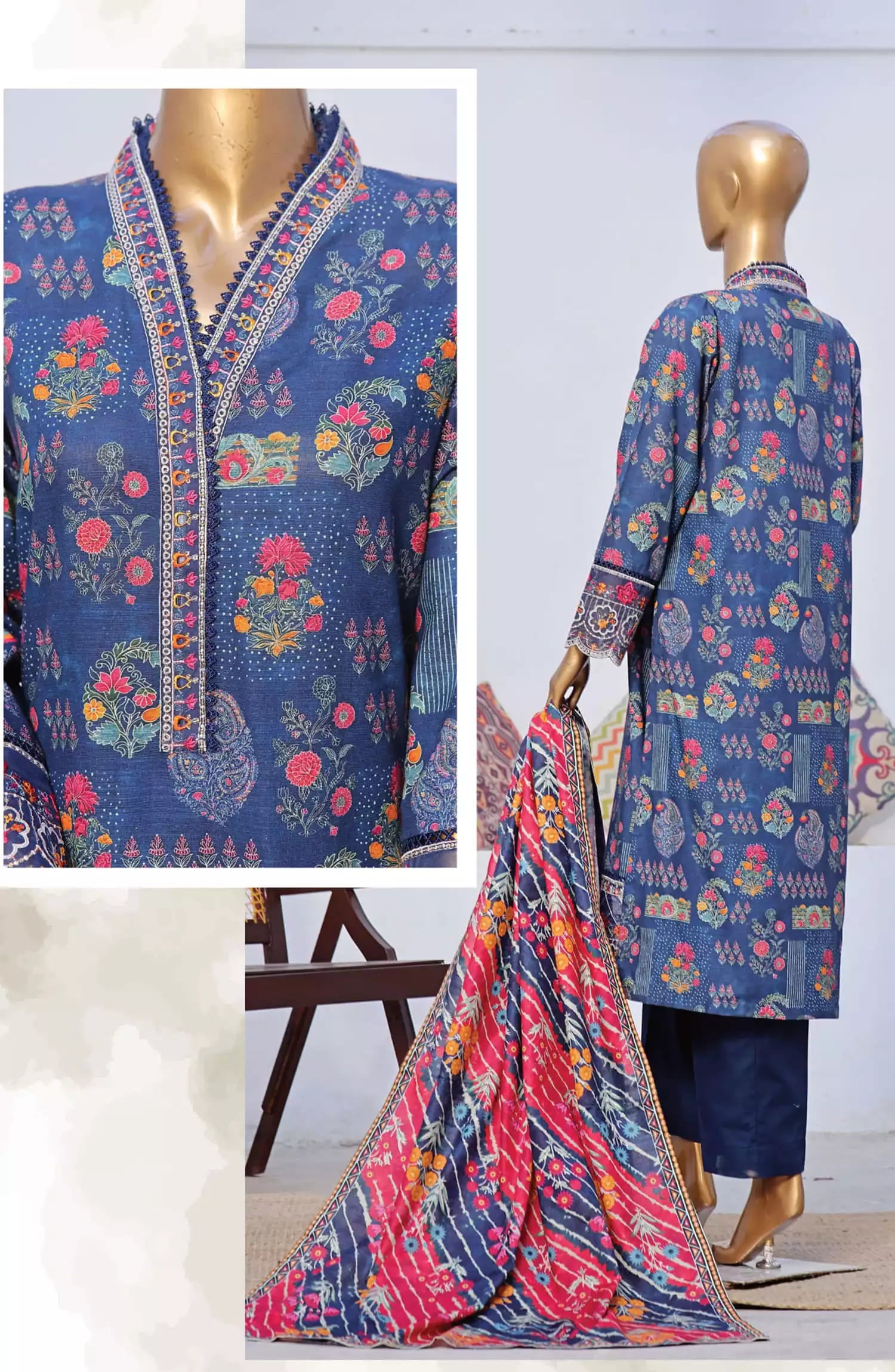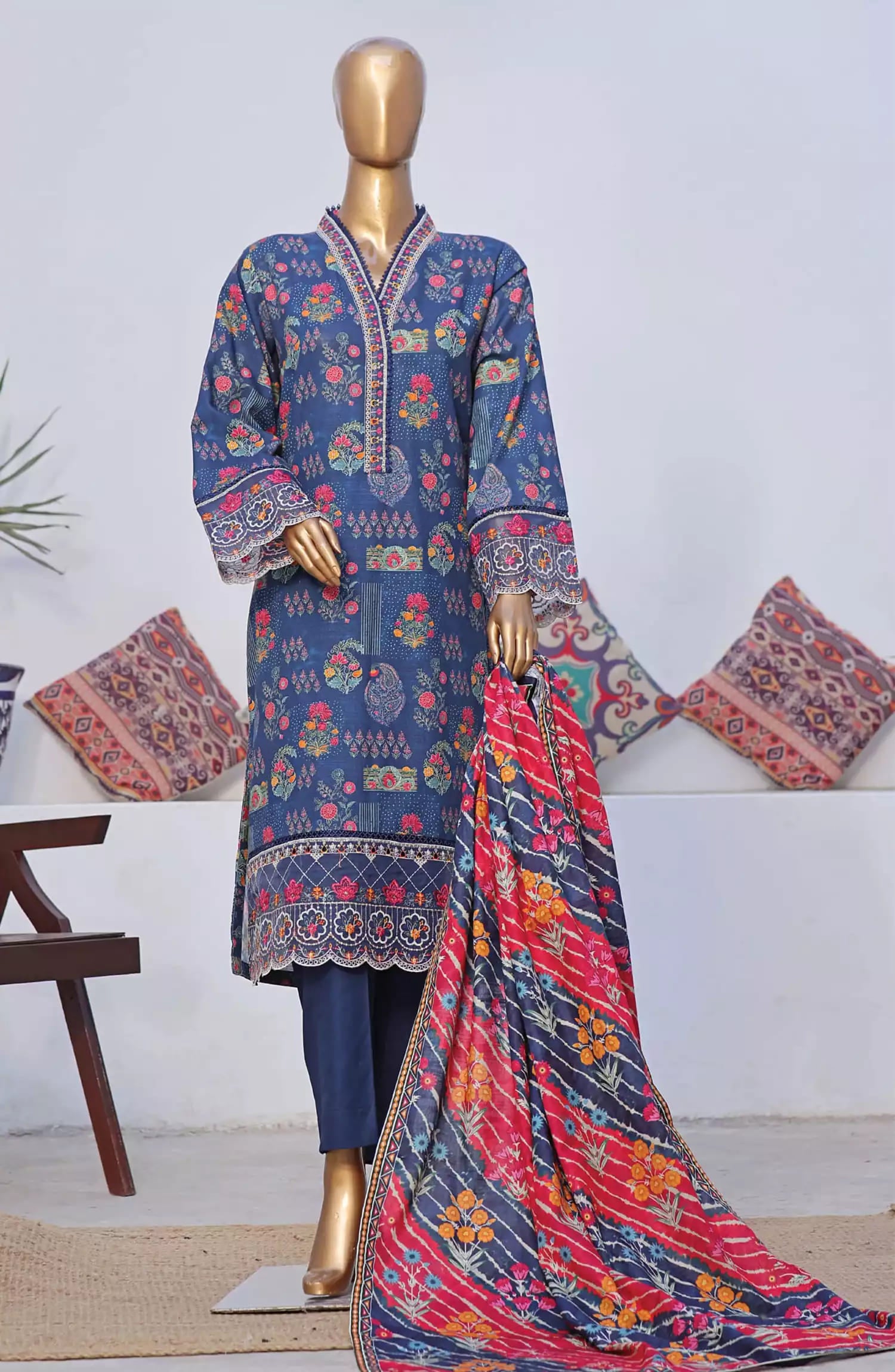 Embroidered Chikankari Khaddar Shirt with Printed Dupatta and Trouser.