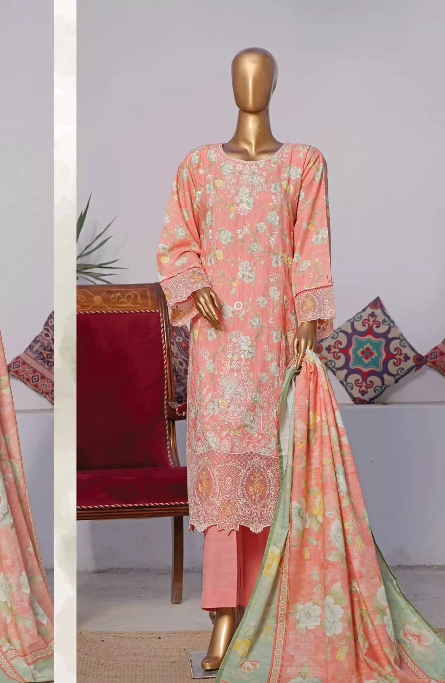 Amna Khadija Embroidered Crinkle Chiffon Unstitched 3 Piece Suit - D-07 - AM25LXC - Pink - Formals Collection