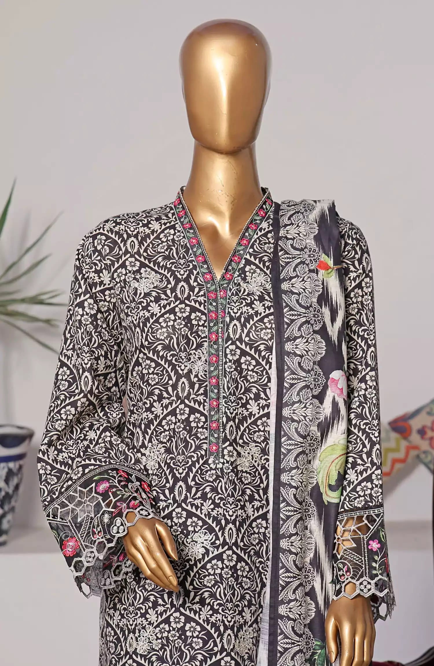 Amna Khadija Embroidered Crinkle Chiffon Unstitched 3 Piece Suit - D-04 - AM25LXC - Grey - Formals Collection