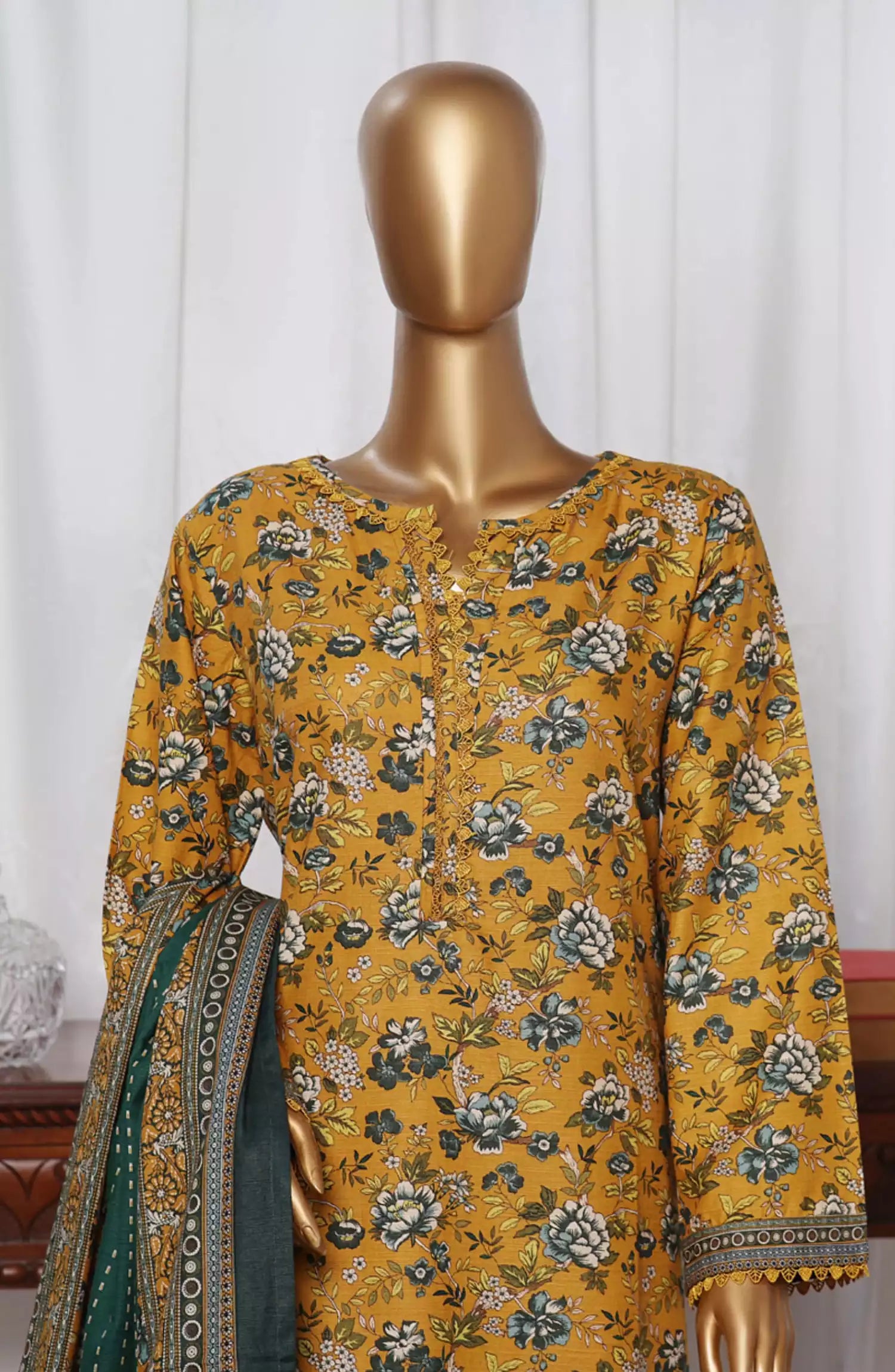 Printed Khaddar Shirt with Dupatta and Trouser .