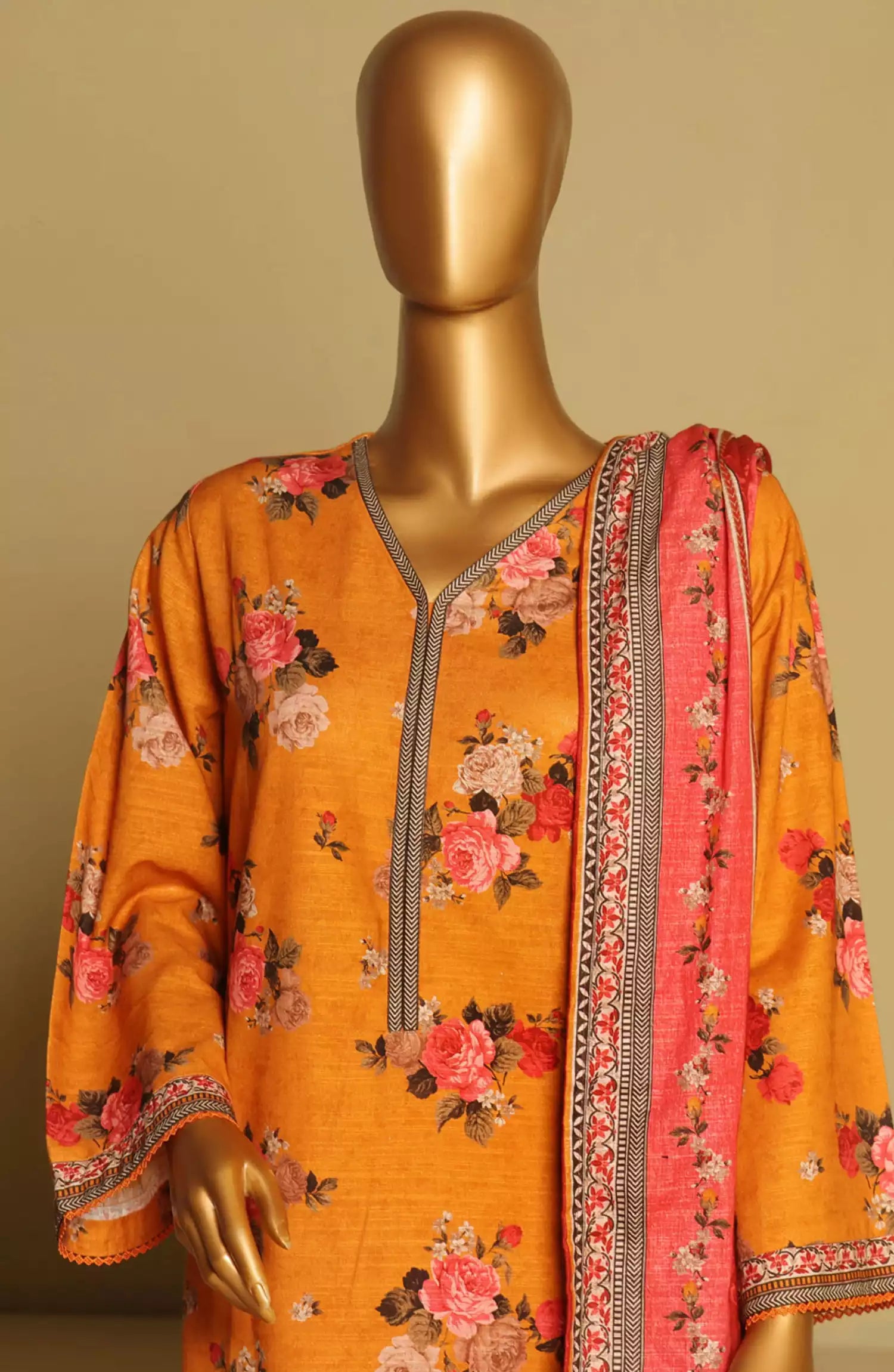 Printed Khaddar Shirt with Dupatta and Trouser .