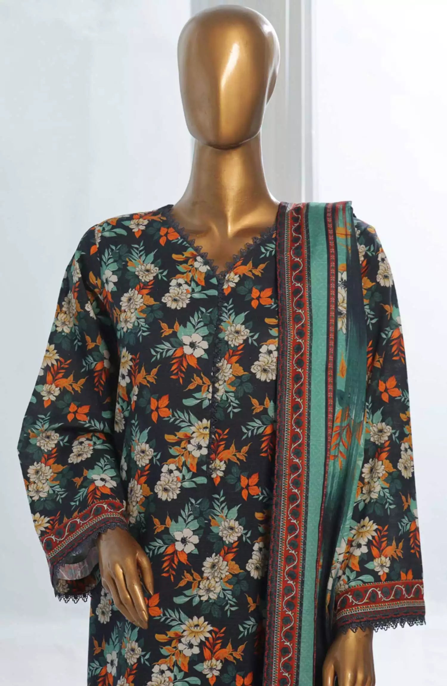 Printed Khaddar Shirt with Dupatta and Trouser .