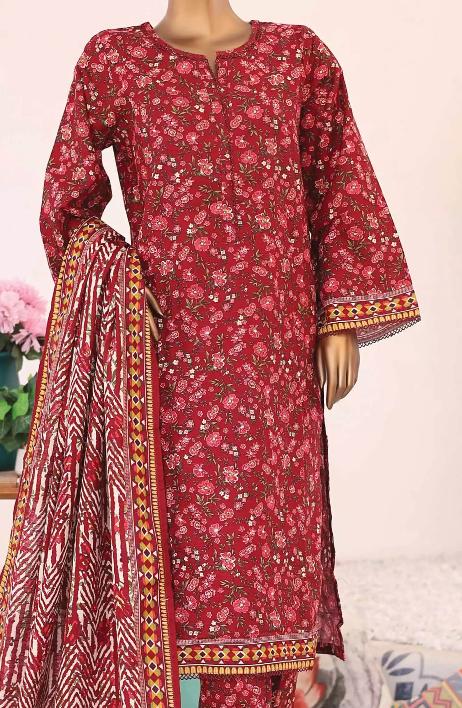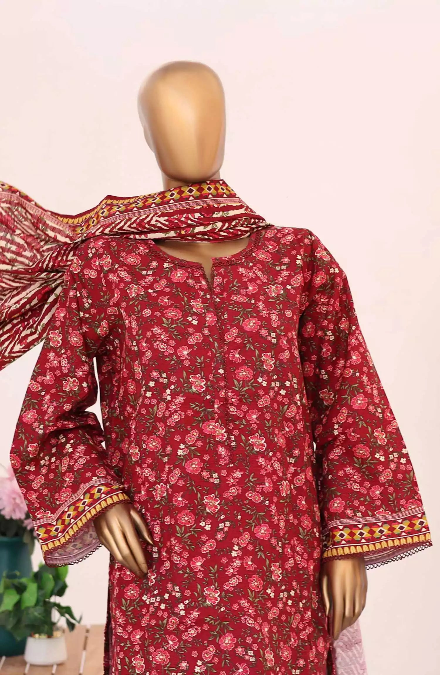 Printed Khaddar Shirt with Dupatta and Trouser .
