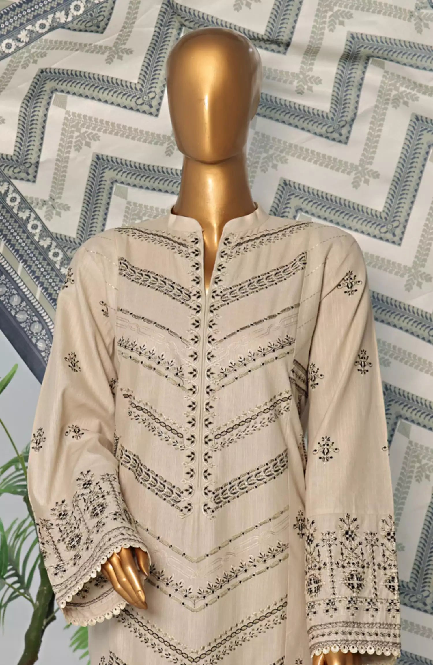 Ayla Embroidered Chambray Stitched 2 Piece Solids - EAE210105D - AY25SW - Beige - Winter Collection