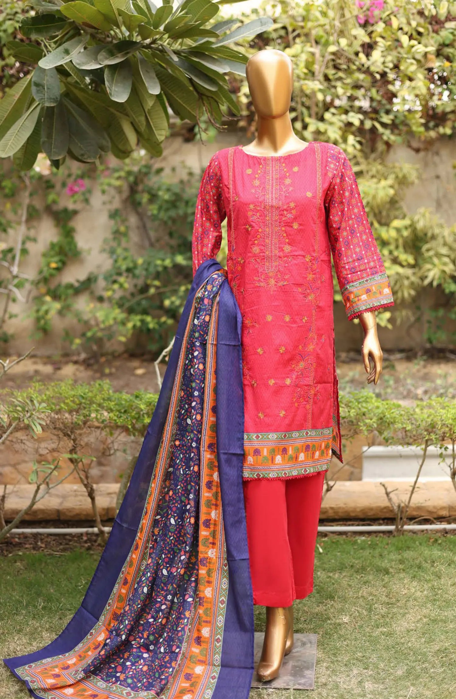 3 piece printed and embroidered stitched lawn suit