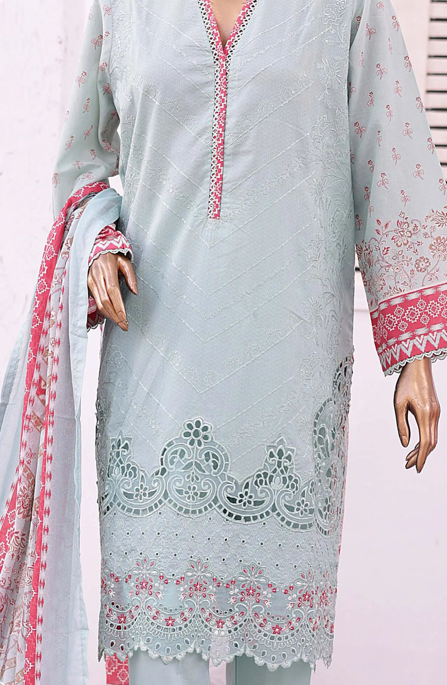 3 piece printed and embroidered stitched lawn suit