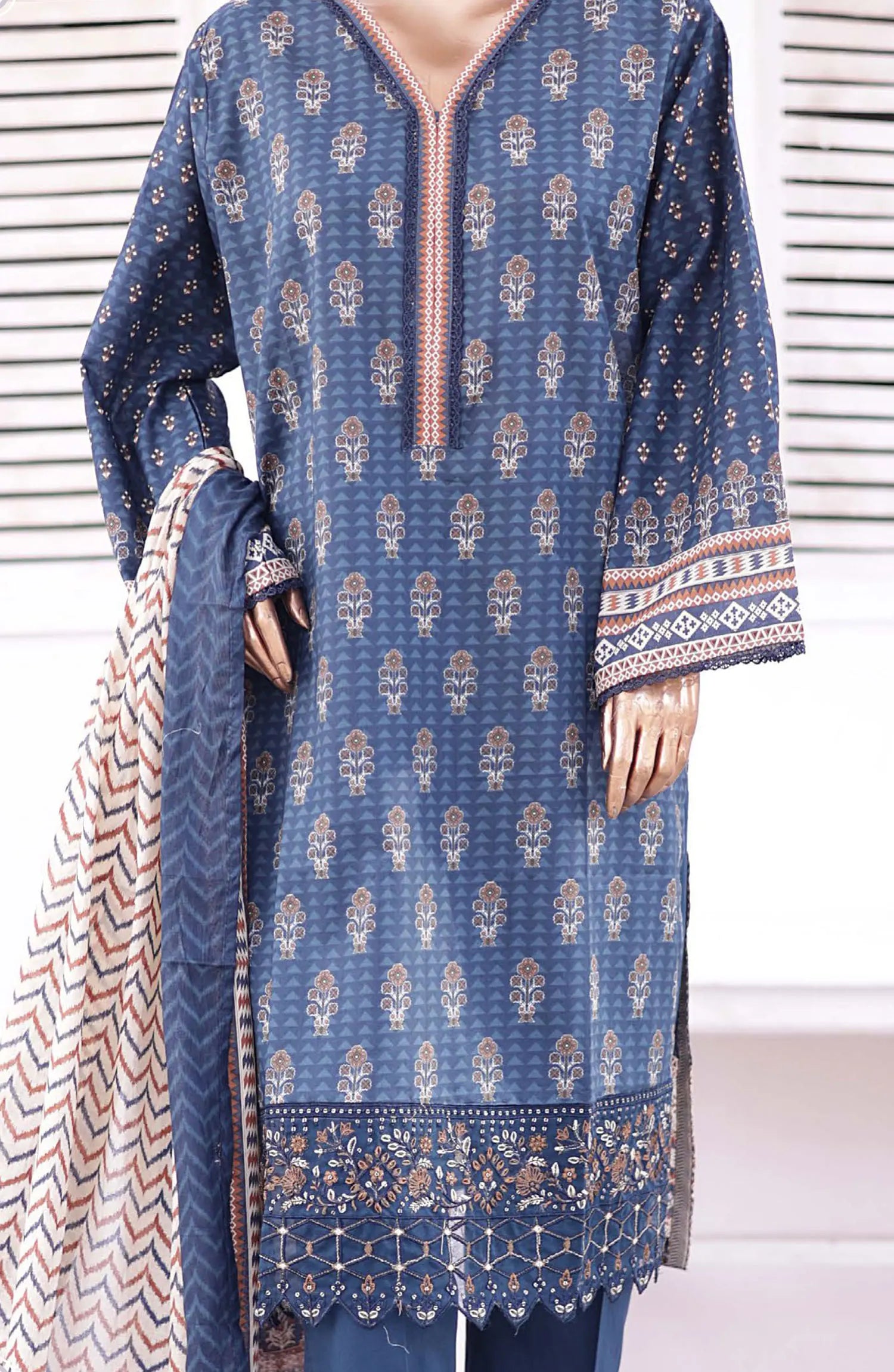 3 piece printed and embroidered stitched lawn suit