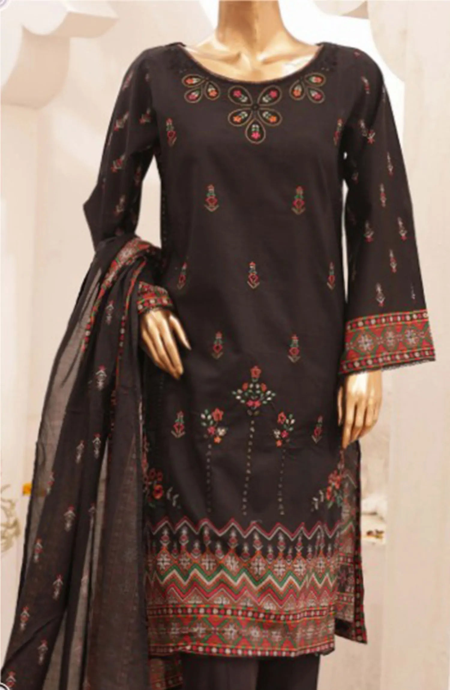 The standard style comes as a long-sleeved kameez with dupatta and trouser/shawlar.