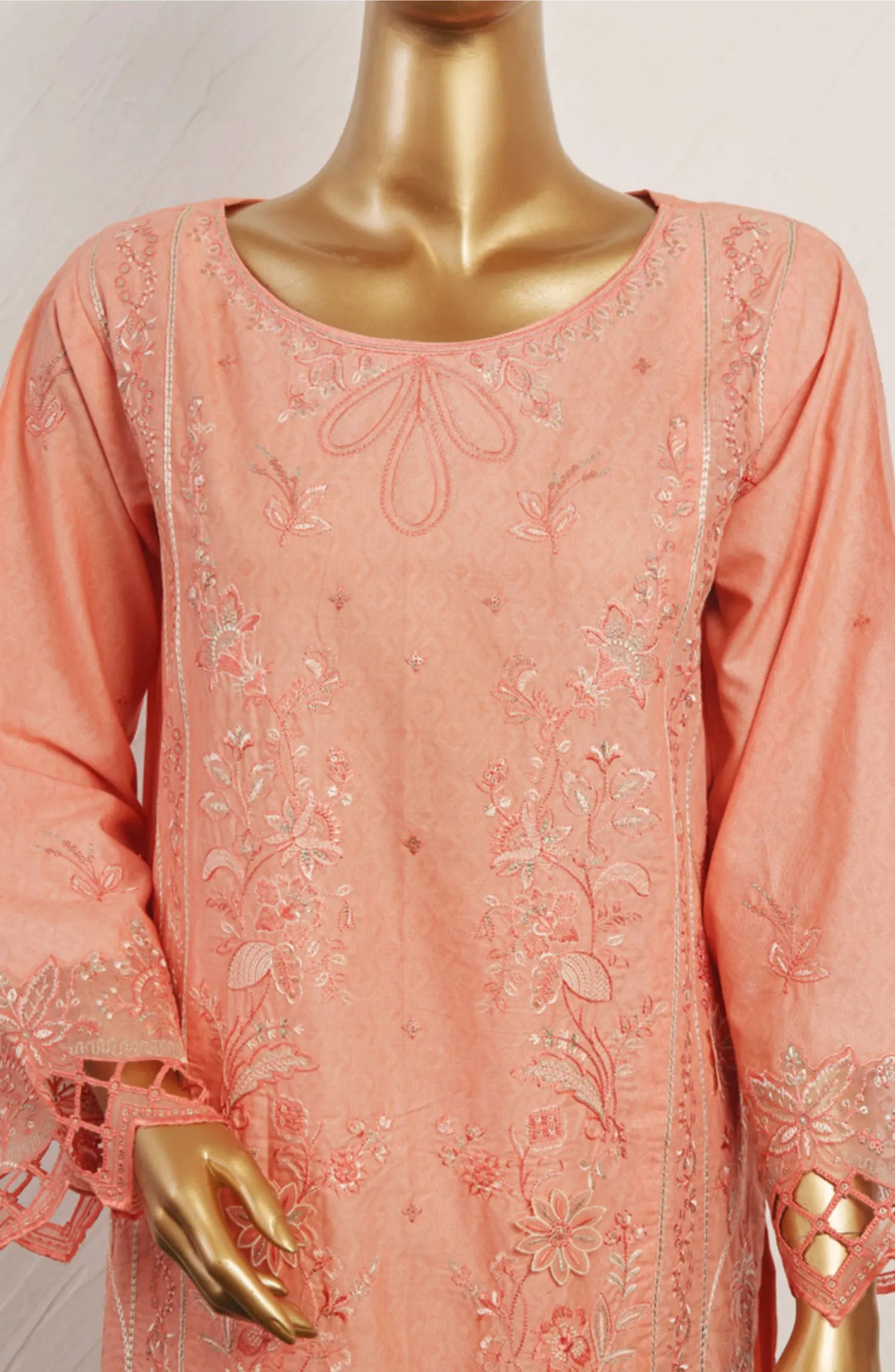 3 Piece Stitched Embroidered Lawn Suit with cutwork kari style.