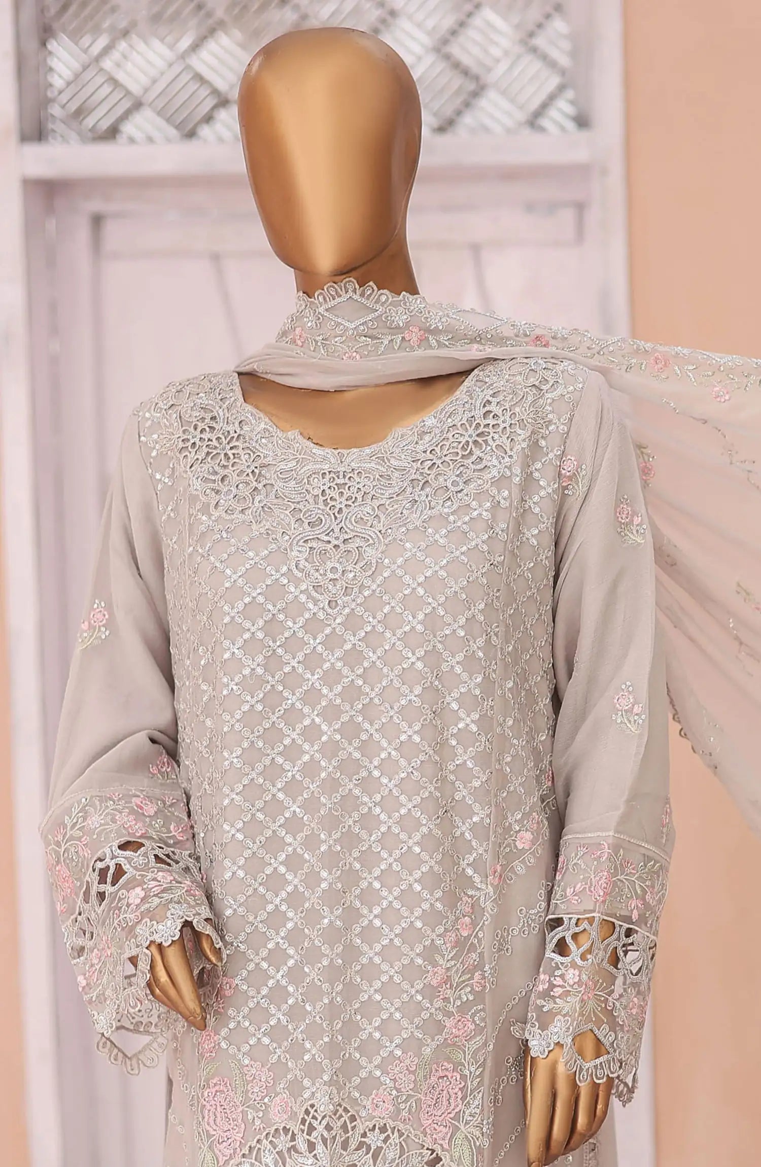 3 Piece Stitched Luxury Embroidered Chiffon Suit .