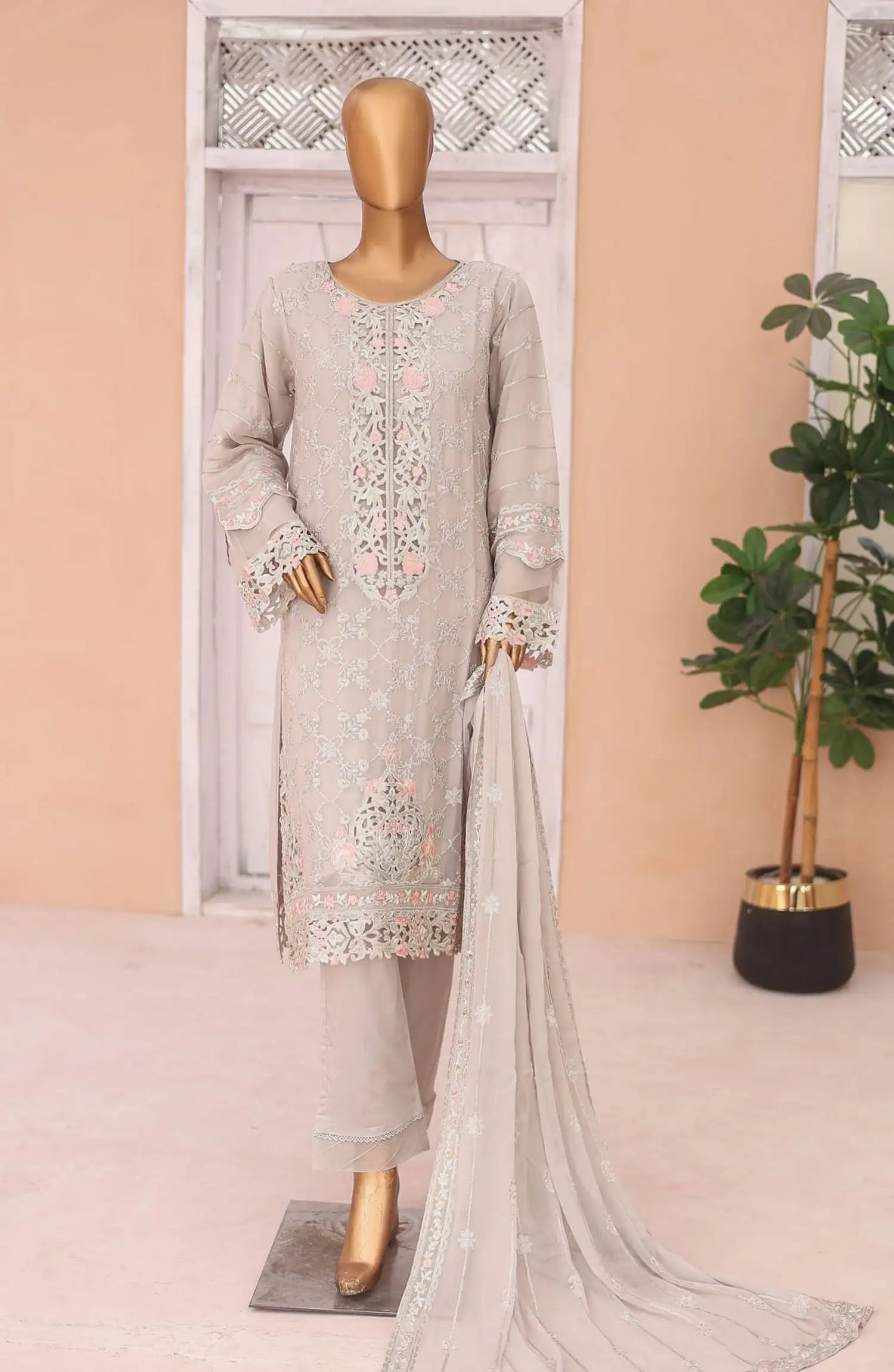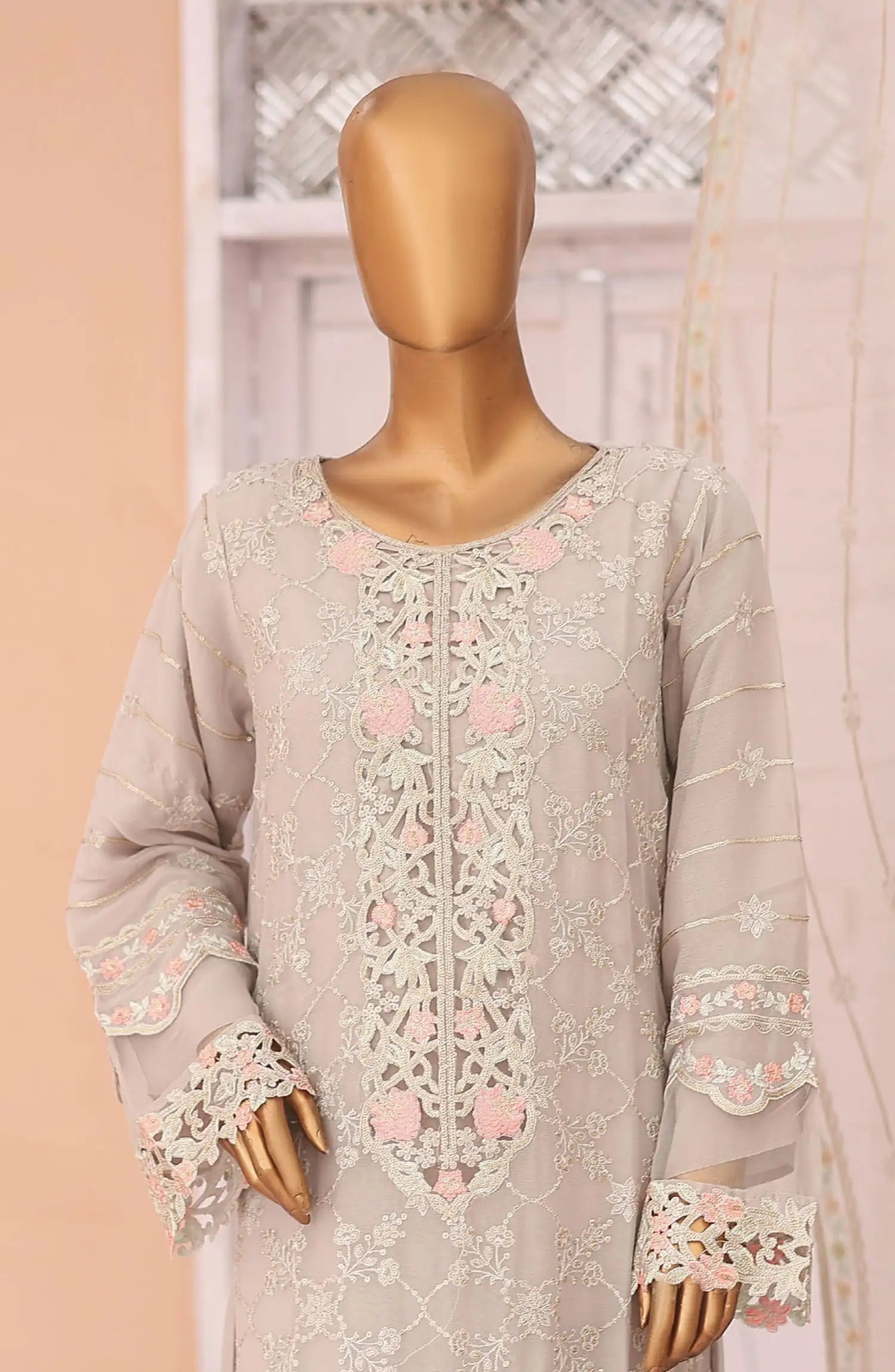 3 Piece Stitched Luxury Embroidered Chiffon Suit .