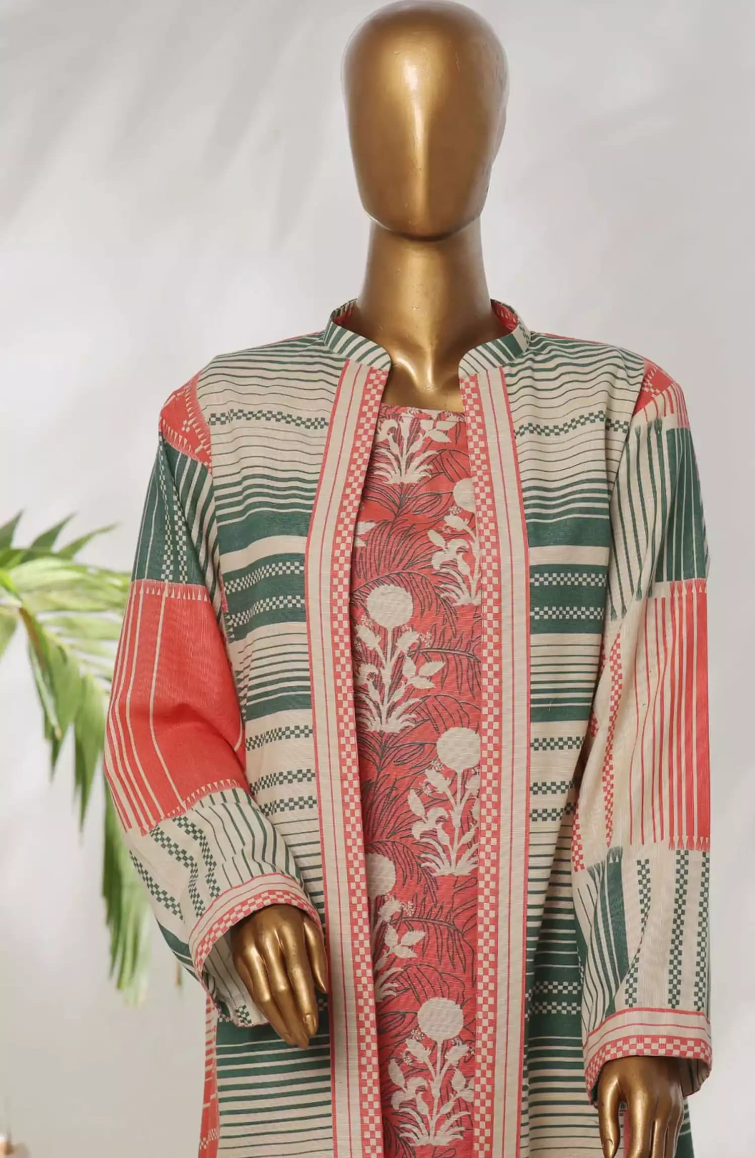 3 Piece Printed Khaddar Stitched Shirt and Trouser with Jacket