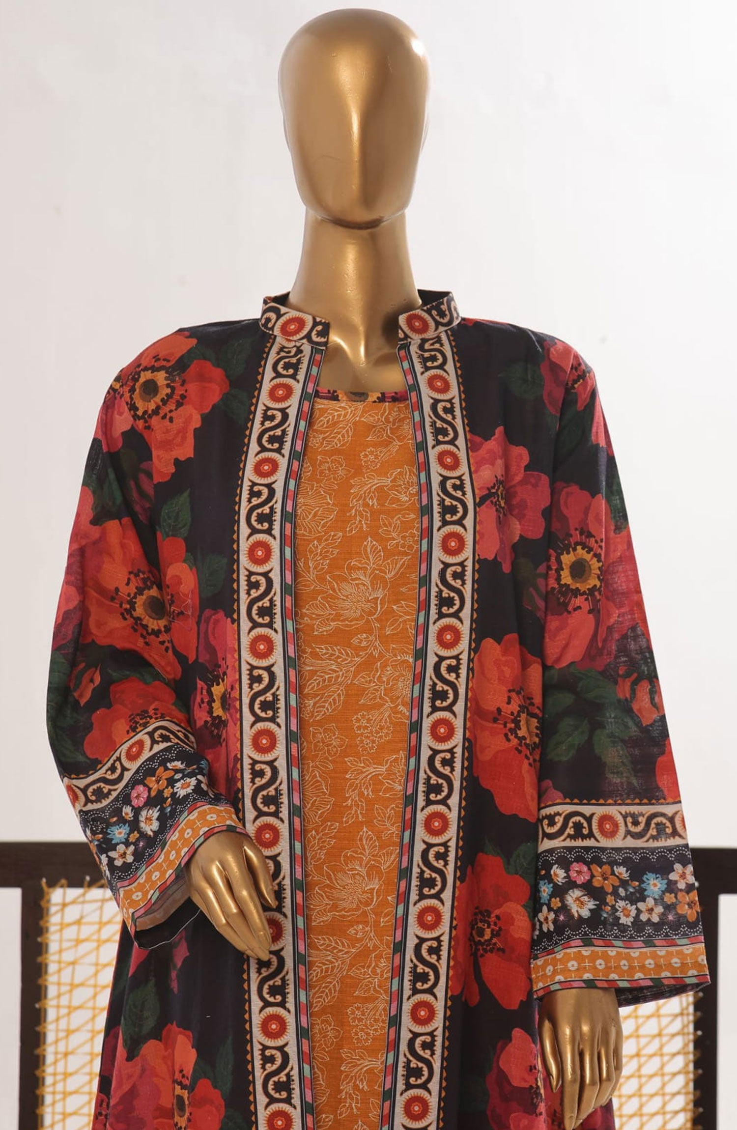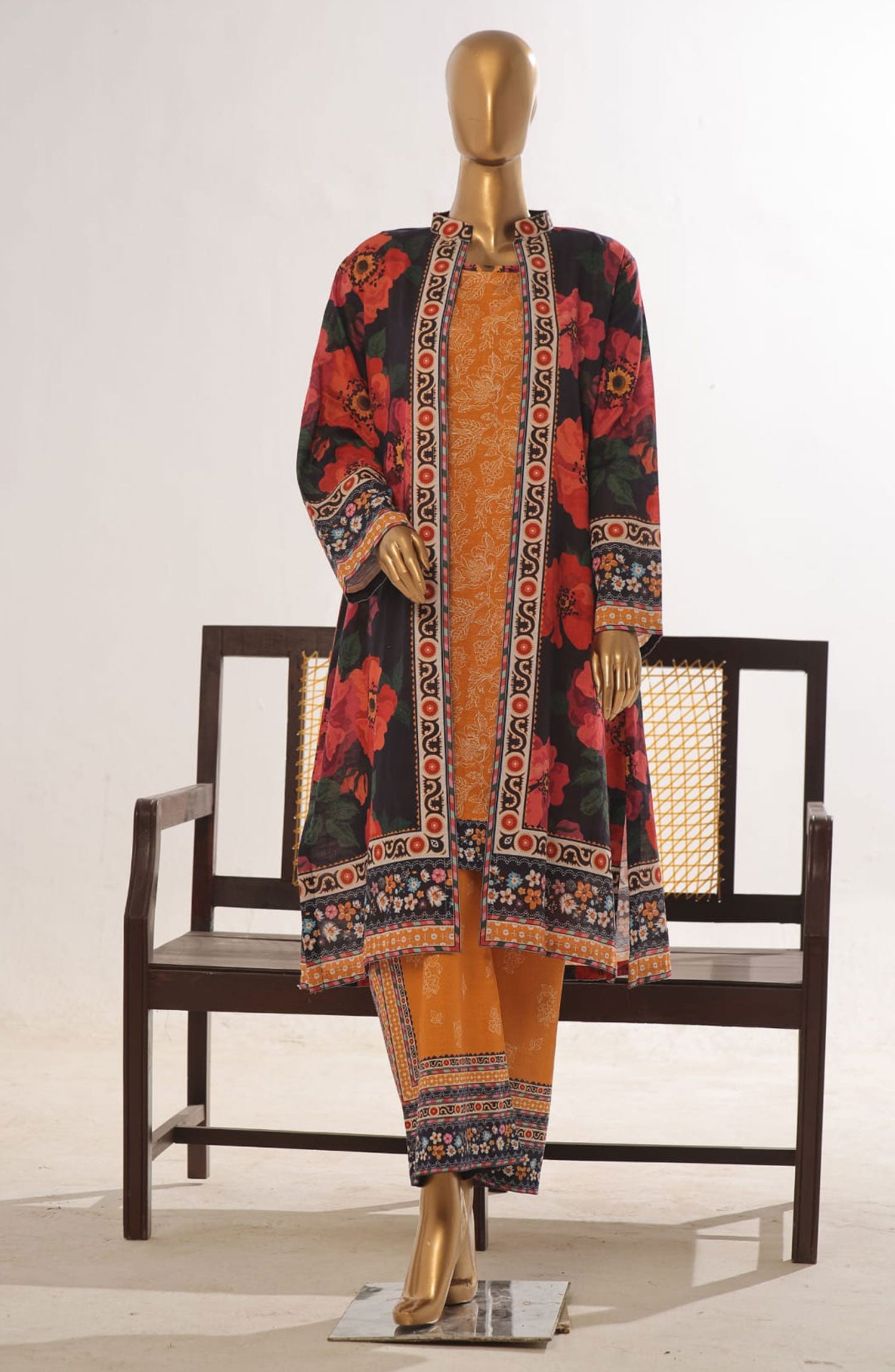 3 Piece Printed Khaddar Stitched Shirt and Trouser with Jacket
