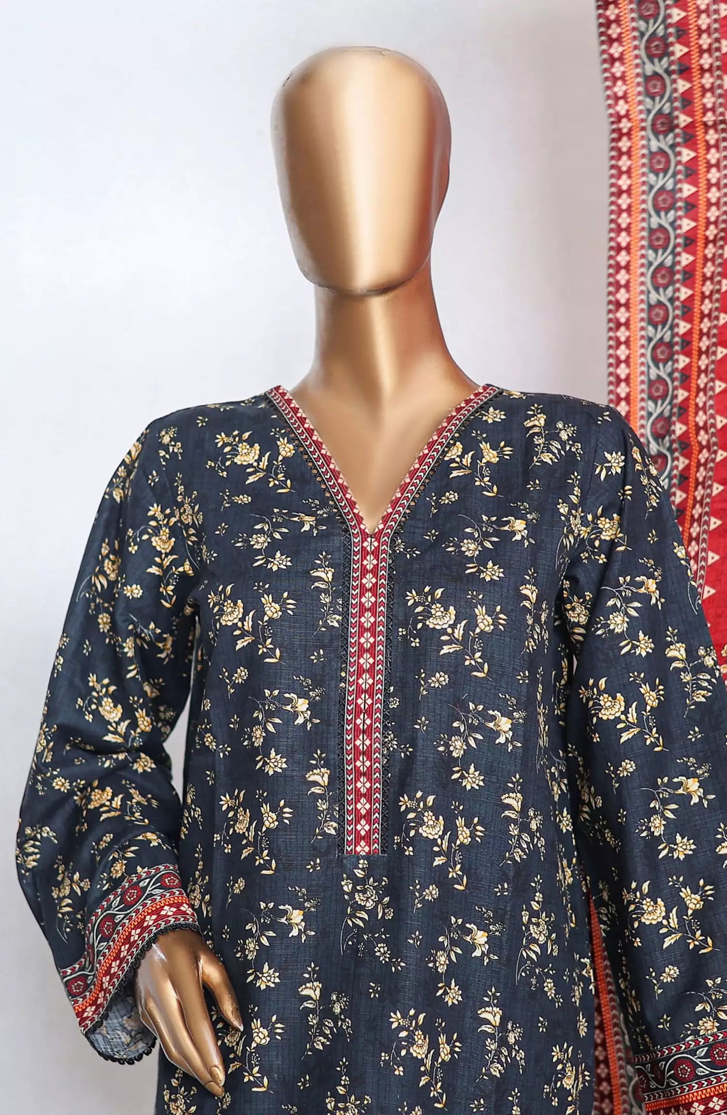 Printed Khaddar Shirt with Dupatta and Trouser .