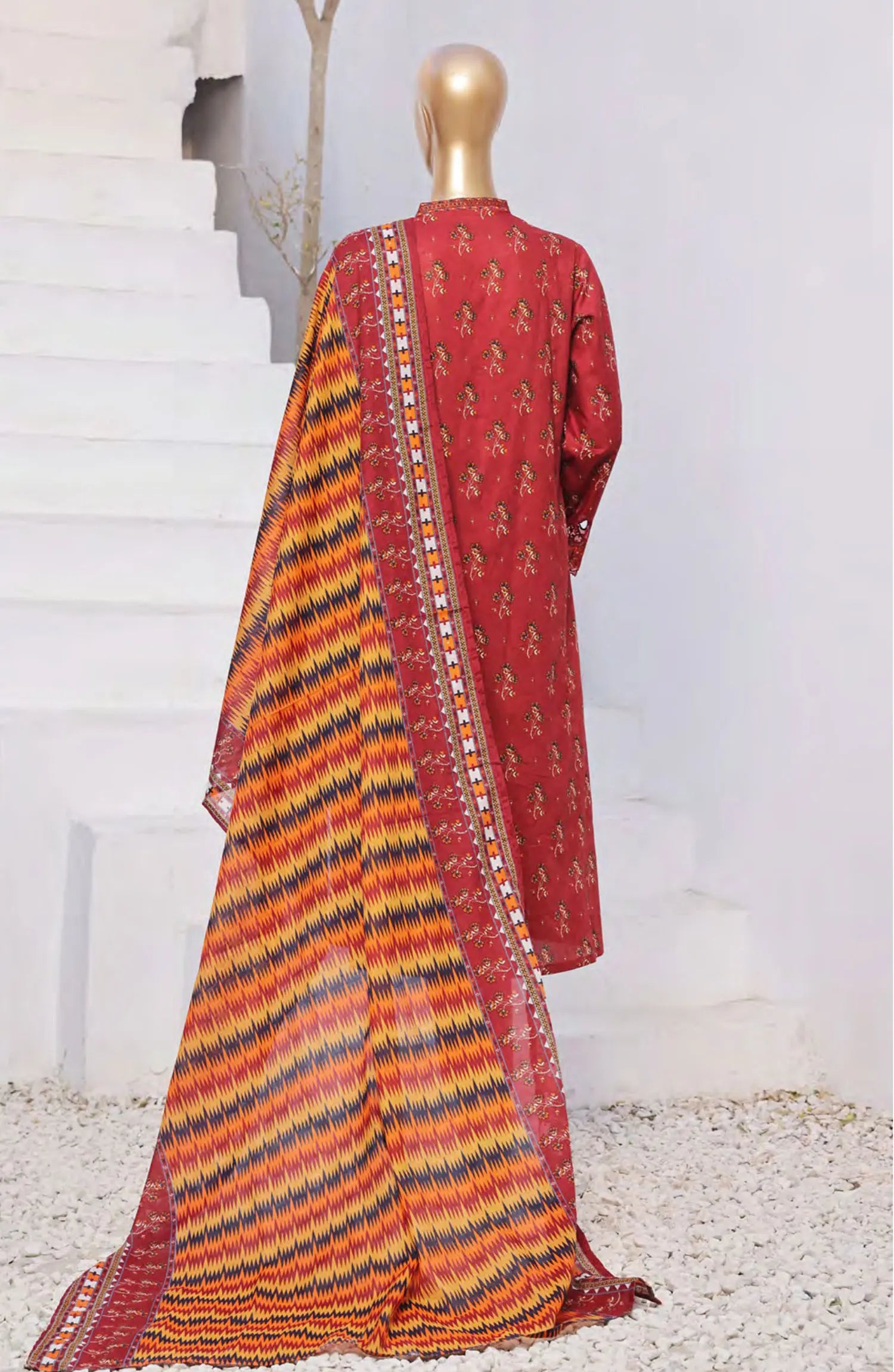 Modest Embroidered Khaddar Stitched 3 Piece Suit - 10050-Mar - MOD25WNT - Maroon - Winter Collection