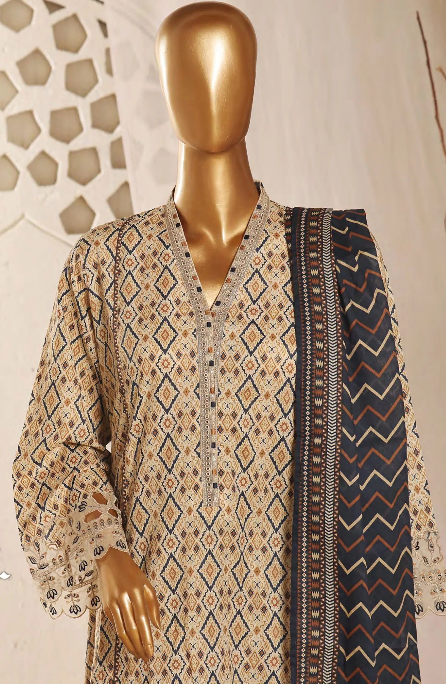 Modest Embroidered Khaddar Stitched 3 Piece Suit - 10000-Brn - MOD25WNT - Brown - Winter Collection