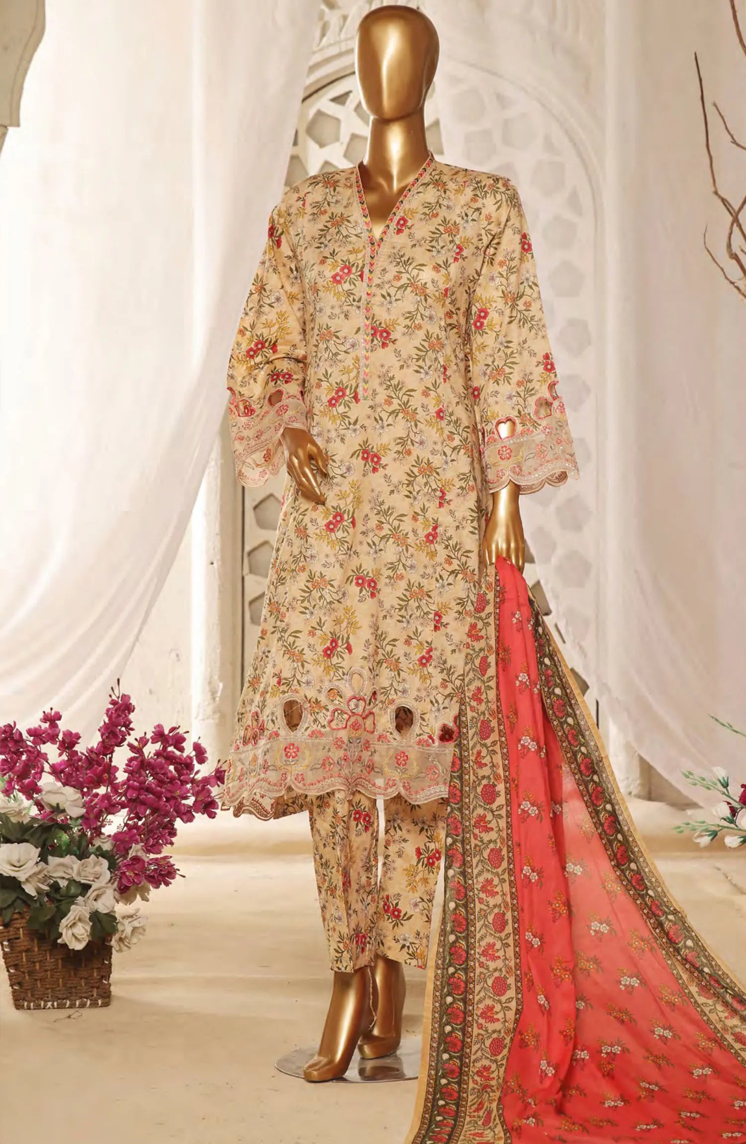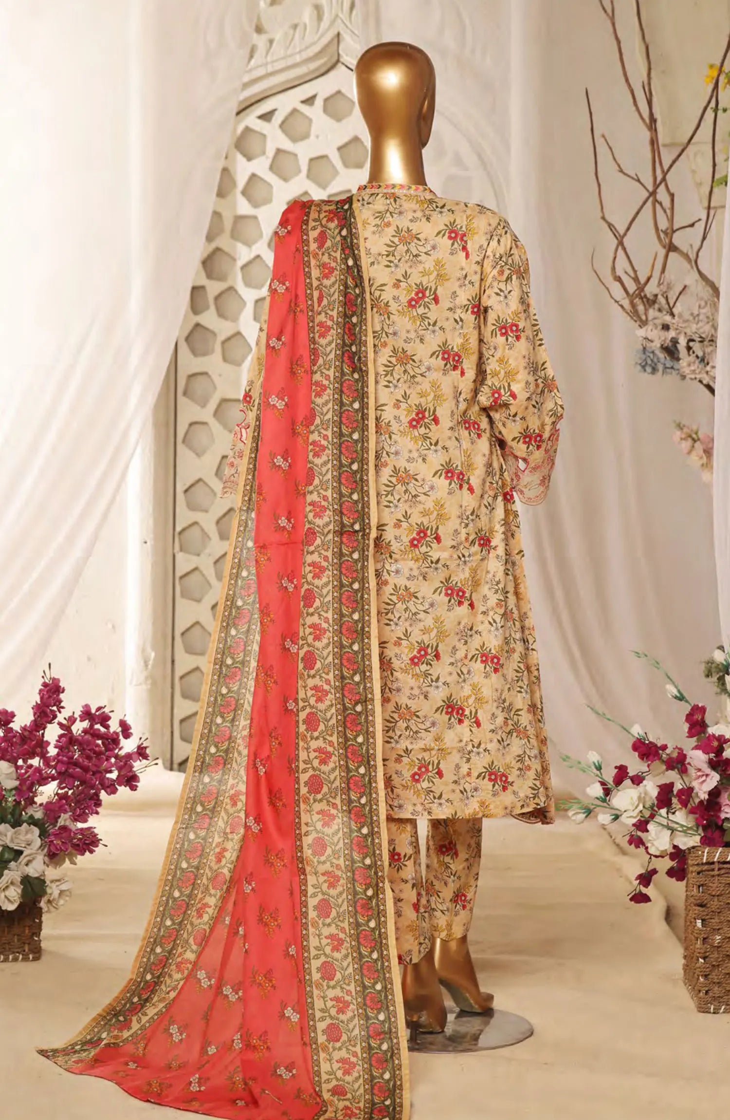 Maryams Luxury Embroidered Net Unstitched 3 Piece Suit - Eiraam-ARZ-8003 - MAR25LF - Fawn - Festive Collection