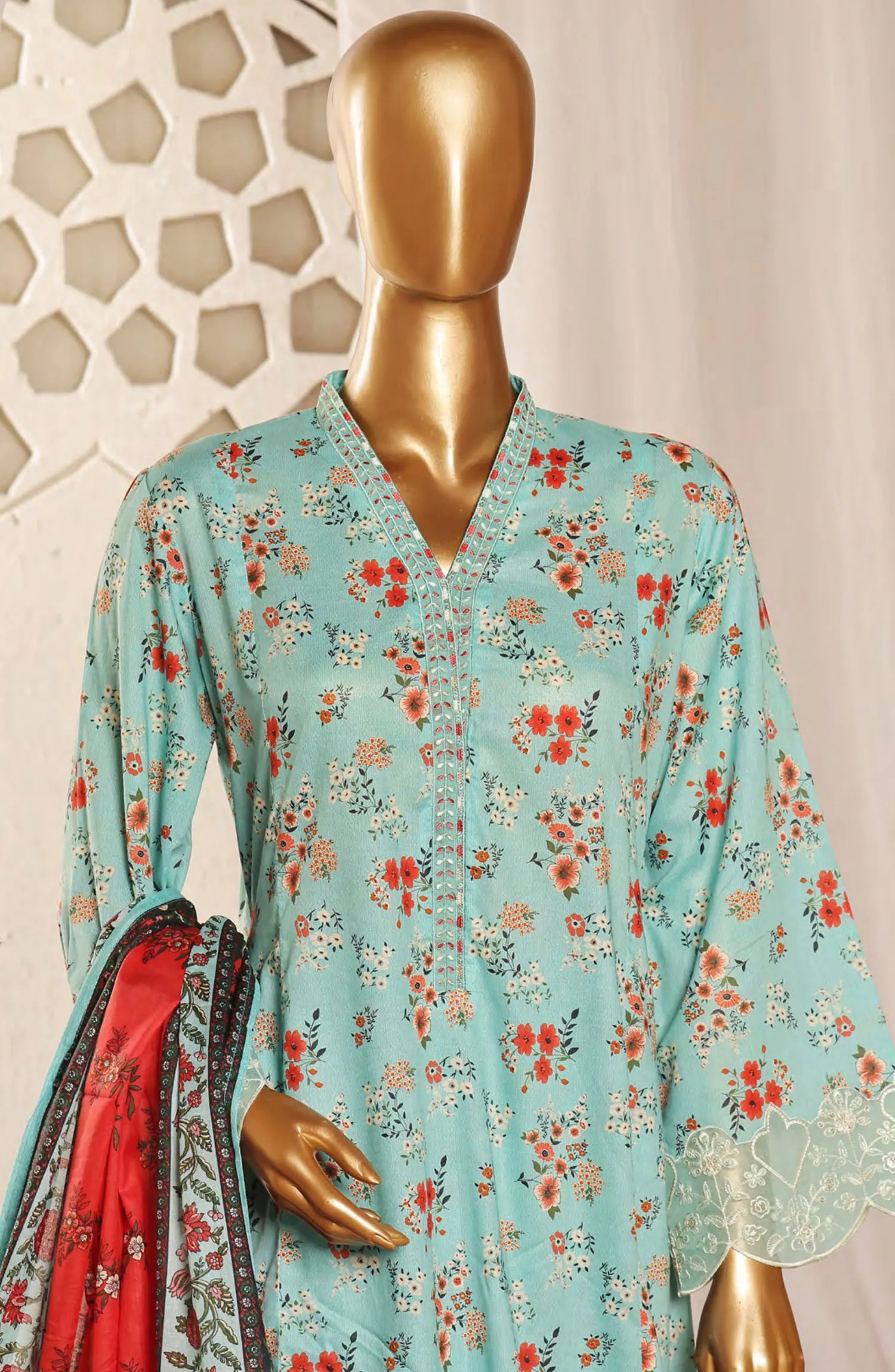 Printed and Embroidered stitched frock with dupatta and Trouser