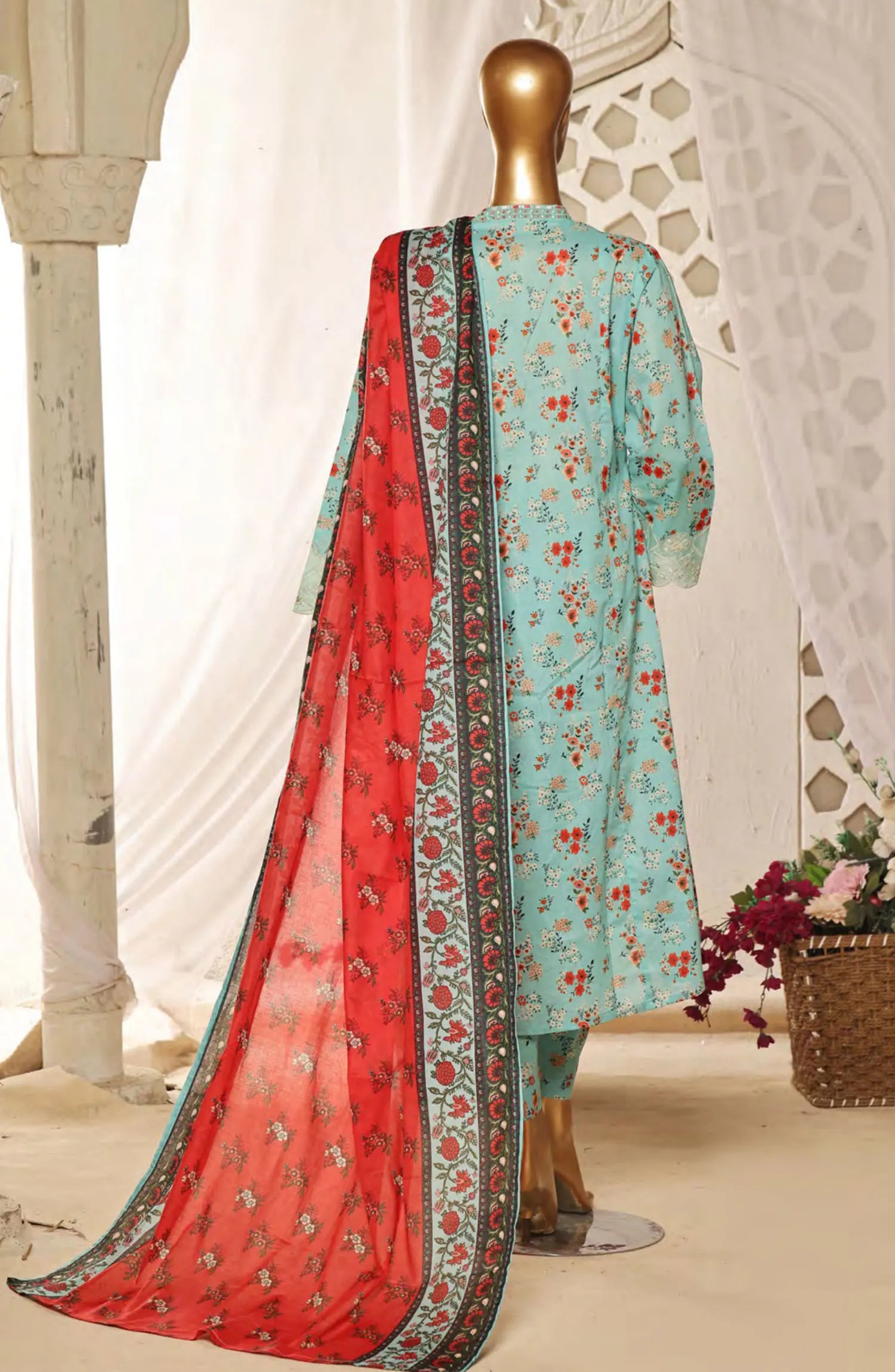 Bin Saeed Lawn Embroidered Frock Collection 2024 has been styled in the image for photography and illustrative purposes.