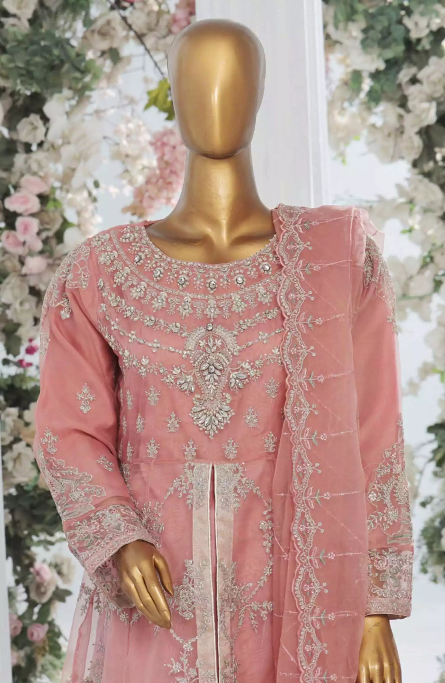 3 Piece Stitched Full Organza Embroidered Shirt with Embroidered Dupatta and Trouser .